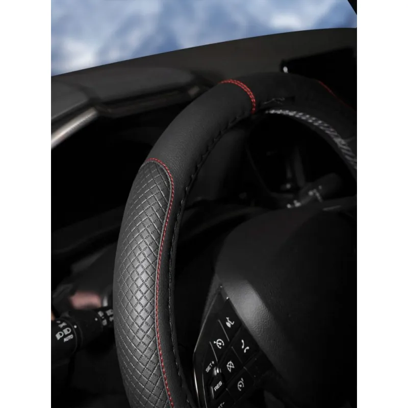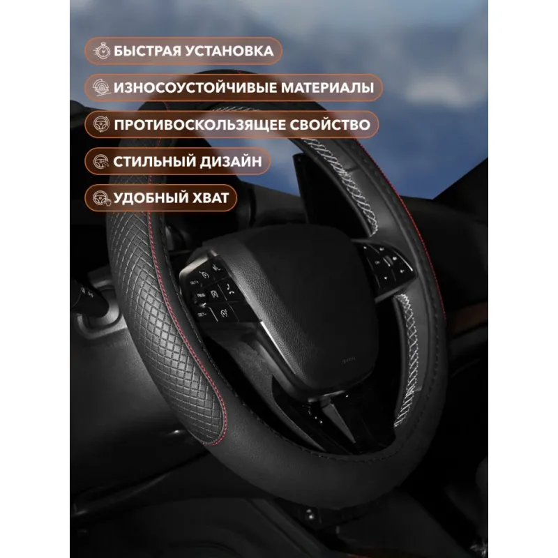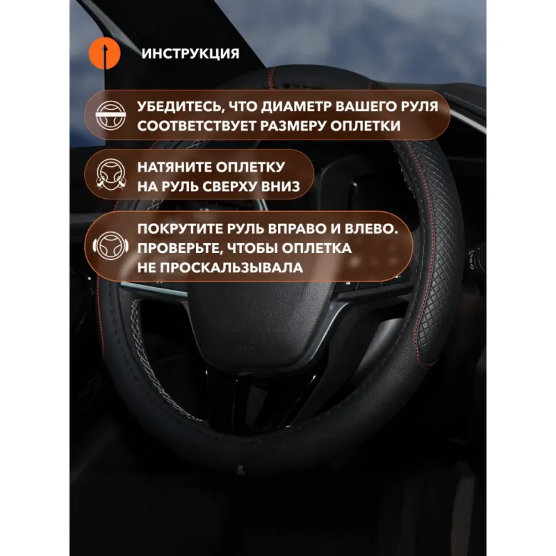 Оплетка на руль, искусст. кожа, с тиснением ромб , черная, красн. прошивка, 38 см/М Описание: Универсальная оплетка на руль AWS-LI-20M бренда Airline — это отличный способ преобразить Ваш автомобиль и защитить руль от износа. Подходит для большинства моделей автомобилей и легко устанавливается на руль. Чехол на руль автомобиля обеспечивает хороший захват и комфортную поездку. Предотвращает скольжение рук и уменьшает усталость во время длительных поездок. Предназначены для защиты штатной обивки или покрытия руля от преждевременного износа и повреждений. А так же для более удобного хвата руля при вождении автомобиля. Преимущества: - состав: искусственная кожа/экокожа, ТЭП; - индивидуализирует интерьер авто; - удобный хват руля; - легкая установка; - защита покрытия руля от износа; - улучшение внешнего вида руля; - не имеет сильного неприятного запаха; - приятная на ощупь; - противоскользящее свойство; Инструкция: 1) Убедитесь, что диаметр вашего руля соответствует размеру оплетки М см; 2) Натяните оплетку на руль сверху вниз; 3) Прокрутите руль вправо/влево. Проверьте, чтобы оплетка не проскальзывала. Оплетка на руль автомобиля является необходимым аксессуаром для всех автомобилей. Оплетка на руль/чехол на руль - это отличный подарок автовладельцу/водителю любого возраста на 23 февраля, 8 марта, Новый год, мужчине, женщине, мужу, жене, парню, девушке. Преобразите салон с помощью такого аксессуара. Характеристики: Артикул: AWS-LI-20M Цвет прошивки: красная Цвет: черный Диаметр, см: 38 Размер: М Форма рулевого колеса: круг Диаметр внутренний, мм: 34 Комплектация: Оплетка - 1 шт Гарантия: от 1 года.