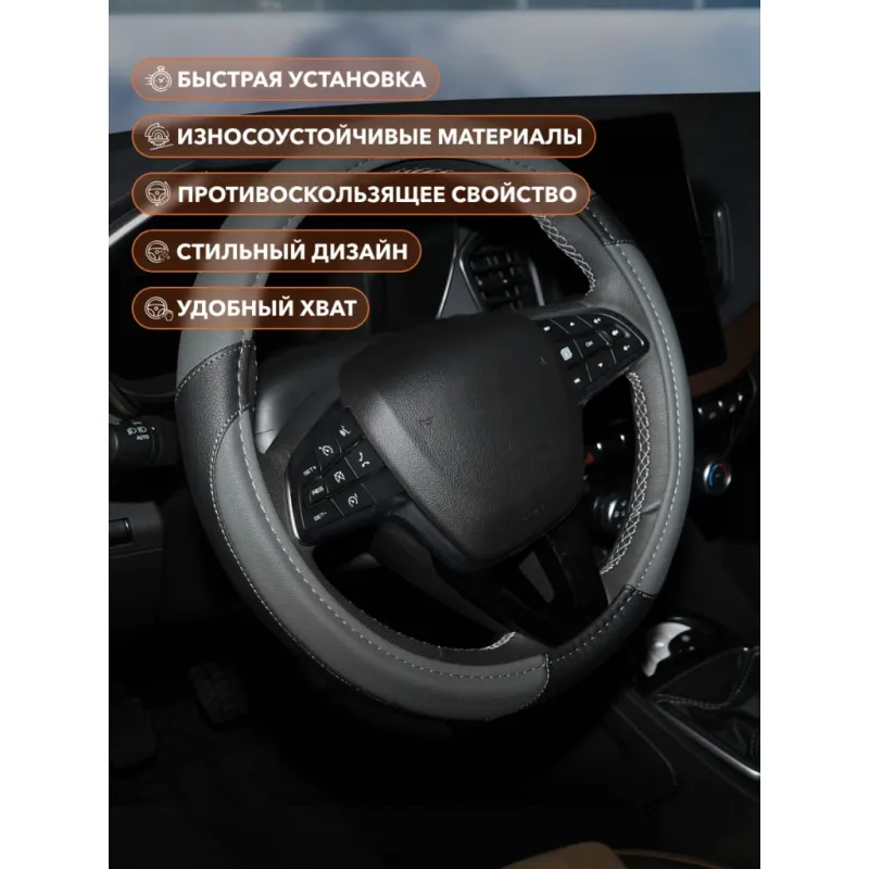 Оплетка на руль, искусственная кожа с перфорацией, серая/черная, 40 см / L Описание: Универсальная оплетка на руль AWC-SL-02L бренда Airline — это отличный способ преобразить Ваш автомобиль и защитить руль от износа. Подходит для большинства моделей автомобилей и легко устанавливается на руль. Чехол на руль автомобиля обеспечивает хороший захват и комфортную поездку. Предотвращает скольжение рук и уменьшает усталость во время длительных поездок. Предназначены для защиты штатной обивки или покрытия руля от преждевременного износа и повреждений. А так же для более удобного хвата руля при вождении автомобиля. Преимущества: - состав: искусственная кожа/экокожа, ТЭП; - индивидуализирует интерьер авто; - удобный хват руля; - легкая установка; - защита покрытия руля от износа; - улучшение внешнего вида руля; - морозостойкие материалы; - не имеет сильного неприятного запаха; - приятная на ощупь; - противоскользящее свойство; Инструкция: 1) Убедитесь, что диаметр вашего руля соответствует размеру оплетки L см; 2) Натяните оплетку на руль сверху вниз; 3) Прокрутите руль вправо/влево. Проверьте, чтобы оплетка не проскальзывала. Оплетка на руль автомобиля является необходимым аксессуаром для всех автомобилей. Оплетка на руль/чехол на руль - это отличный подарок автовладельцу/водителю любого возраста на 23 февраля, 8 марта, Новый год, мужчине, женщине, мужу, жене, парню, девушке. Преобразите салон с помощью такого аксессуара. Характеристики: Артикул: AWC-SL-02L Цвет прошивки: черный Цвет: серый/черный Диаметр, см: 40 Размер: L Форма рулевого колеса: круг Диаметр внутренний, мм: 34 Комплектация: Оплетка - 1 шт Картонная вкладка - 1 шт Гарантия: от 1 года.