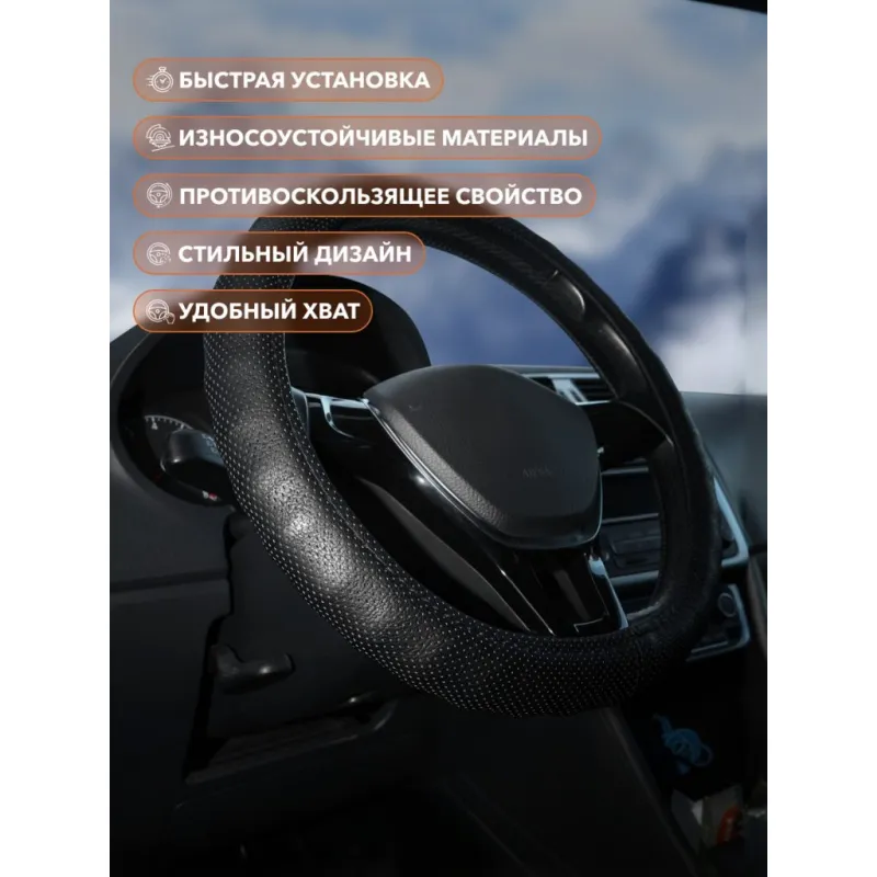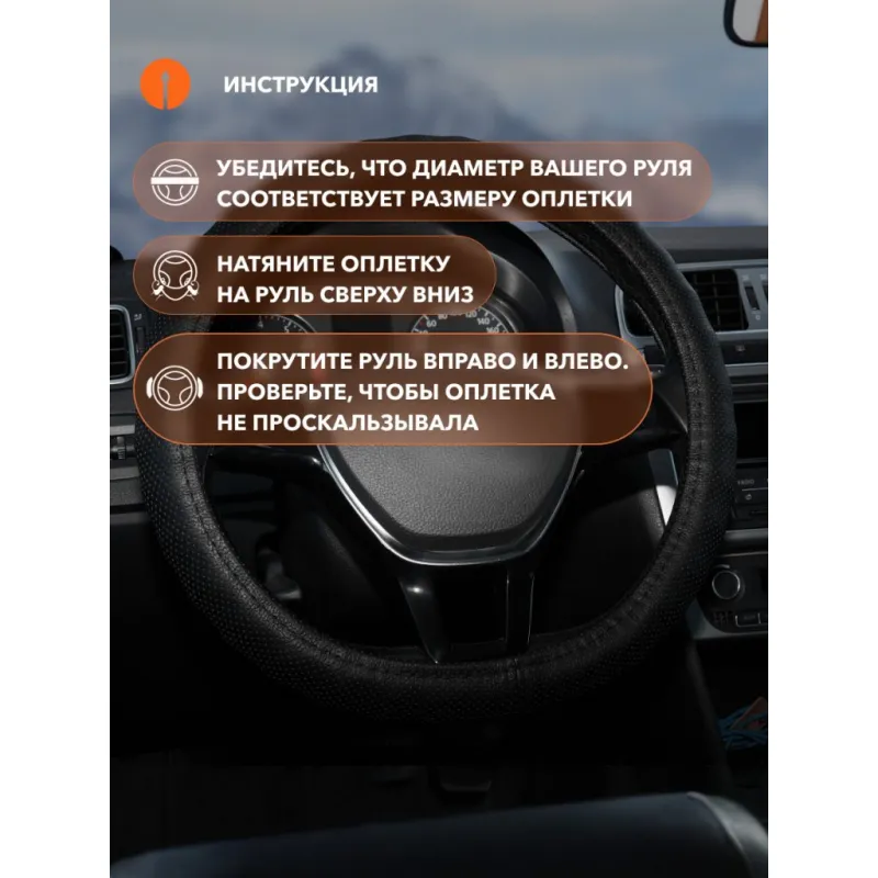 Оплетка на руль, перфорированная кожа, ребристая, черная, 37-39 см/М Описание: Универсальная оплетка на руль AWC-RS-13M бренда Airline — это отличный способ преобразить Ваш автомобиль и защитить руль от износа. Подходит для большинства моделей автомобилей и легко устанавливается на руль. Чехол на руль автомобиля обеспечивает хороший захват и комфортную поездку. Предотвращает скольжение рук и уменьшает усталость во время длительных поездок. Предназначены для защиты штатной обивки или покрытия руля от преждевременного износа и повреждений. А так же для более удобного хвата руля при вождении автомобиля. Преимущества: - состав: кожа рециклированная, резина; - индивидуализирует интерьер авто; - удобный хват руля; - легкая установка; - защита покрытия руля от износа; - улучшение внешнего вида руля; - морозостойкие материалы; - не имеет сильного неприятного запаха; - гладкая поверхность с одношовным соединением; - современный аналог натуральной кожи(99%); - приятная на ощупь; - противоскользящее свойство; Инструкция: 1) Убедитесь, что диаметр вашего руля соответствует размеру оплетки М см; 2) Натяните оплетку на руль сверху вниз; 3) Прокрутите руль вправо/влево. Проверьте, чтобы оплетка не проскальзывала. Оплетка на руль автомобиля является необходимым аксессуаром для всех автомобилей. Оплетка на руль/чехол на руль - это отличный подарок автовладельцу/водителю любого возраста на 23 февраля, 8 марта, Новый год, мужчине, женщине, мужу, жене, парню, девушке. Преобразите салон с помощью такого аксессуара. Характеристики: Артикул: AWC-RS-13M Цвет прошивки: черный Цвет: черный Диаметр, см: 38 Размер: М Форма рулевого колеса: круг Диаметр внутренний, мм: 34 Комплектация: Оплетка - 1 шт ПЭ пакет - 1 шт Картонный подвес - 1 шт Гарантия: от 1 года.
