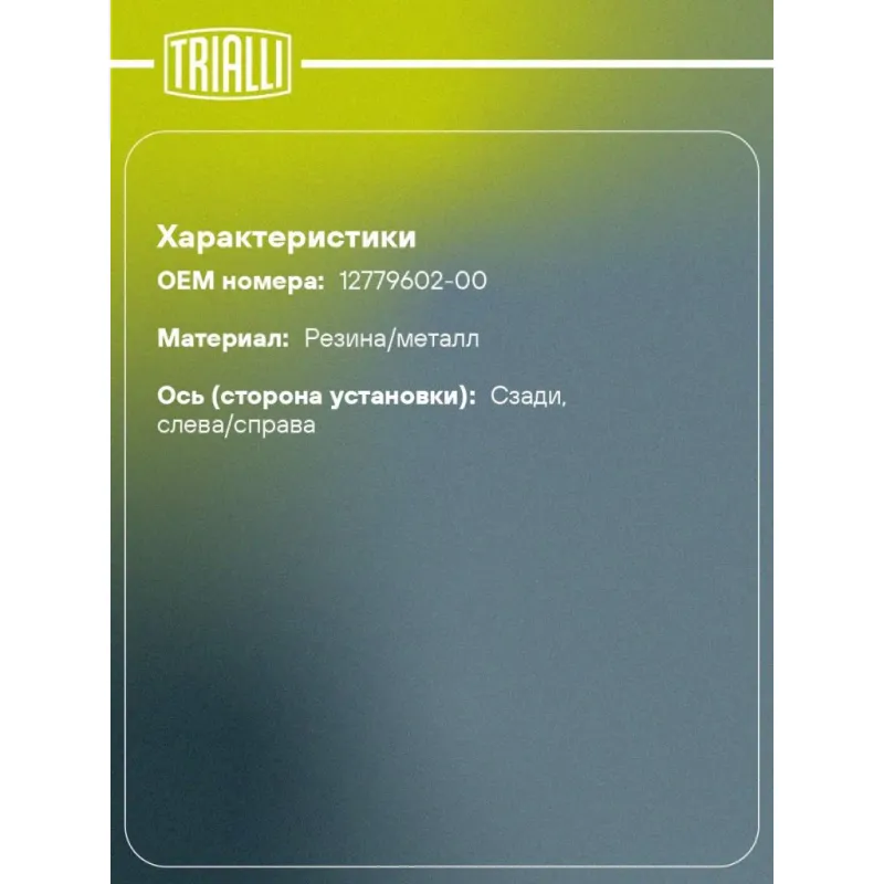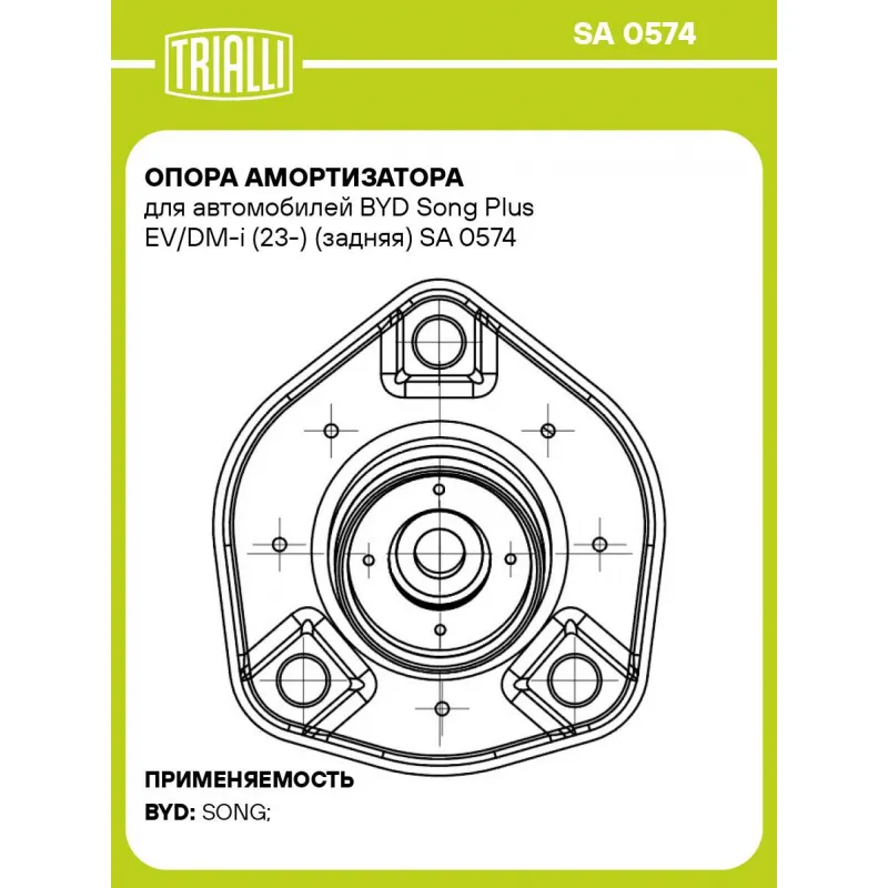Опора амортизатора для автомобилей BYD Song Plus EV/DM-i (23-) (задняя) Характеристики: Артикул: SA 0574 OEM номера: 12779602-00 Материал: Резина/металл Ось (сторона установки): Сзади, слева/справа Гарантийный срок: 2 года/60 000 км Товарная линейка: BLACK Количество на автомобиль: 2 Дополнительная информация: Упаковка изделия может отличаться от представленной на фото Комплектация: Опора амортизатора - 1 шт Гарантия: от 1 года.