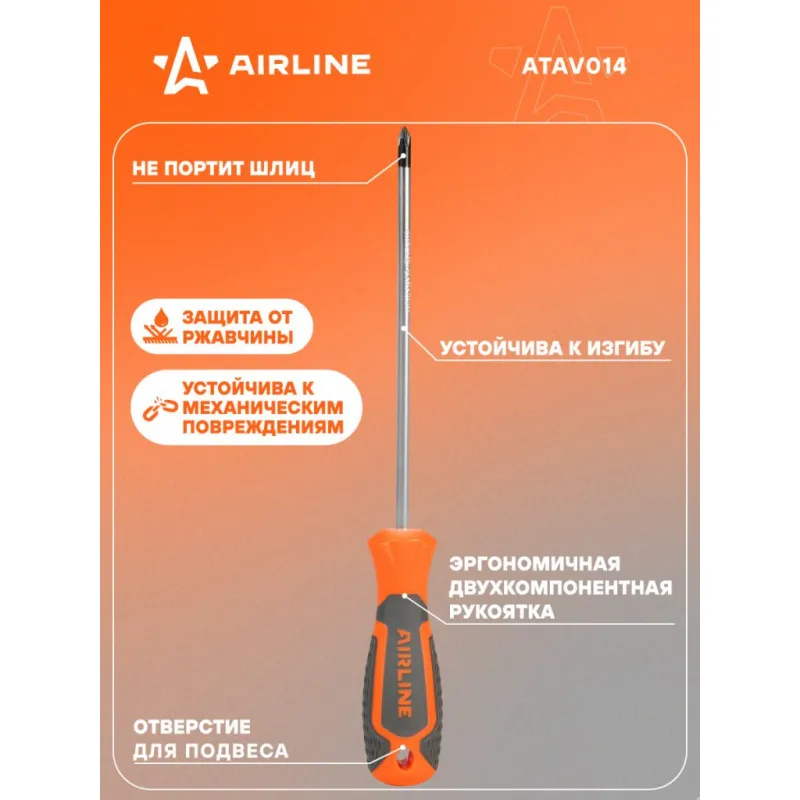 Отвертка крестовая PH0x100мм, магнитный наконечник, пласт.подвес Описание: Отвертка крестовая PH0 от бренда AIRLINE - многофункциональный инструмент для ремонта и строительства для машины, для дома, для дачи, для авто. Сочетание твёрдых и мягких элементов рукоятки оптимально распределяет усилие, прилагаемое к инструменту, и предотвращает проскальзывание. Эргономичный дизайн облегчает работу. Отвёртки AIRLINE удобно подвешиваются за специальное отверстие. Лезвие отвёрток AIRLINE изготовлено из хром-ванадиевой стали, жало подвержено индукционной закалке и фосфатировано. Особенности: - Магнитный наконечник; - Подойдут для дома, для гаража, для любых бытовых задач, многофункциональная, для ремонта, для сборки мебели, для автомобиля; - Размер: PH0; - Высокая степень передачи крутящего момента от отвертки; - Материал стержня - CRV; - Материал рукоятки - двухкомпонентная, прорезиненная; - Подвес инструмента; Товар официального производителя AIRLINE будет идеальным дополнение в профессиональный набор инструментов автомобилиста. Отлично подойдет в качестве практичного подарка мужчинам, женщинам, автомобилисту, папе, отцу, мужу, парню и другу на Новый год, день рождения и без повода, незаменимый строительный инструмент и оснастка сверление, долбление, закручивание для дома, автосервиса, для профессионального использования. Характеристики: Артикул: ATAV014 Размер: PH0 Длина жала отвёртки, мм: 100 Материал стержня: CRV Материал рукоятки: двухкомпонентная Комплектация: Отвертка - 1 шт Гарантия: от 1 года.