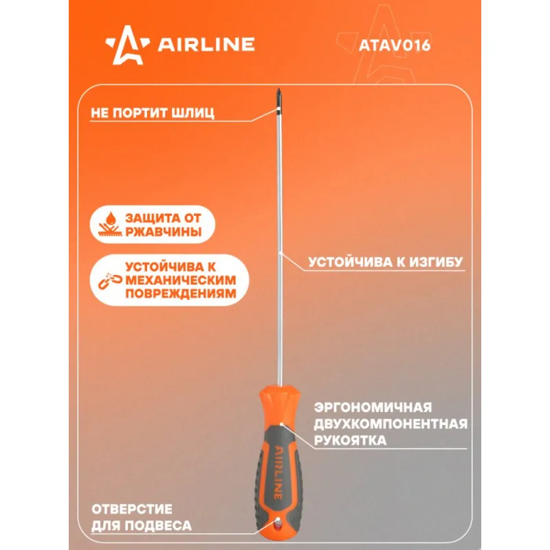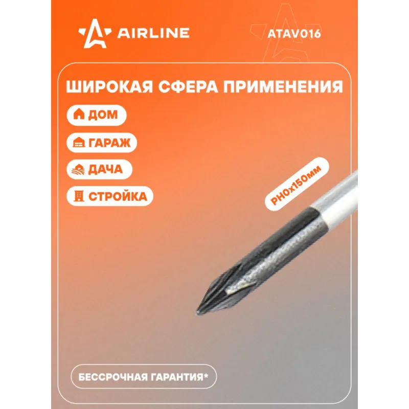 Отвертка крестовая PH0x150мм, магнитный наконечник, пласт.подвес Описание: Отвертка крестовая PH0 от бренда AIRLINE - многофункциональный инструмент для ремонта и строительства для машины, для дома, для дачи, для авто. Сочетание твёрдых и мягких элементов рукоятки оптимально распределяет усилие, прилагаемое к инструменту, и предотвращает проскальзывание. Эргономичный дизайн облегчает работу. Отвёртки AIRLINE удобно подвешиваются за специальное отверстие. Лезвие отвёрток AIRLINE изготовлено из хром-ванадиевой стали, жало подвержено индукционной закалке и фосфатировано. Особенности: - Магнитный наконечник; - Подойдут для дома, для гаража, для любых бытовых задач, многофункциональная, для ремонта, для сборки мебели, для автомобиля; - Размер: PH0; - Высокая степень передачи крутящего момента от отвертки; - Материал стержня - CRV; - Материал рукоятки - двухкомпонентная, прорезиненная; - Подвес инструмента; Товар официального производителя AIRLINE будет идеальным дополнение в профессиональный набор инструментов автомобилиста. Отлично подойдет в качестве практичного подарка мужчинам, женщинам, автомобилисту, папе, отцу, мужу, парню и другу на Новый год, день рождения и без повода, незаменимый строительный инструмент и оснастка сверление, долбление, закручивание для дома, автосервиса, для профессионального использования. Характеристики: Артикул: ATAV016 Размер: PH0 Длина жала отвёртки, мм: 150 Материал стержня: CRV Материал рукоятки: двухкомпонентная Комплектация: Отвертка - 1 шт Гарантия: от 1 года.