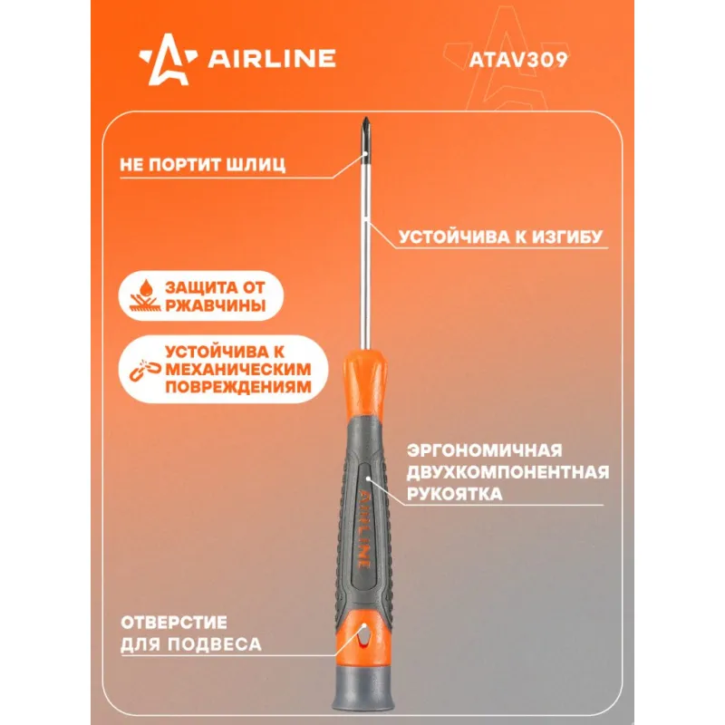 Отвертка крестовая PH0x60мм, магнитный наконечник, пласт.подвес Описание: Отвертка крестовая PH0 от бренда AIRLINE - многофункциональный инструмент для ремонта и строительства для машины, для дома, для дачи, для авто. Сочетание твёрдых и мягких элементов рукоятки оптимально распределяет усилие, прилагаемое к инструменту, и предотвращает проскальзывание. Эргономичный дизайн облегчает работу. Отвёртки AIRLINE удобно подвешиваются за специальное отверстие. Лезвие отвёрток AIRLINE изготовлено из хром-ванадиевой стали, жало подвержено индукционной закалке и фосфатировано. Особенности: - Магнитный наконечник; - Подойдут для дома, для гаража, для любых бытовых задач, многофункциональная, для ремонта, для сборки мебели, для автомобиля; - Размер: PH0; - Высокая степень передачи крутящего момента от отвертки; - Материал стержня - CRV; - Материал рукоятки - двухкомпонентная, прорезиненная; - Подвес инструмента; Товар официального производителя AIRLINE будет идеальным дополнение в профессиональный набор инструментов автомобилиста. Отлично подойдет в качестве практичного подарка мужчинам, женщинам, автомобилисту, папе, отцу, мужу, парню и другу на Новый год, день рождения и без повода, незаменимый строительный инструмент и оснастка сверление, долбление, закручивание для дома, автосервиса, для профессионального использования. Характеристики: Артикул: ATAV309 Размер: PH0 Длина жала отвёртки, мм: 60 Материал стержня: CRV Материал рукоятки: двухкомпонентная Комплектация: Отвертка - 1 шт Гарантия: от 1 года.