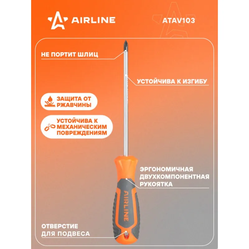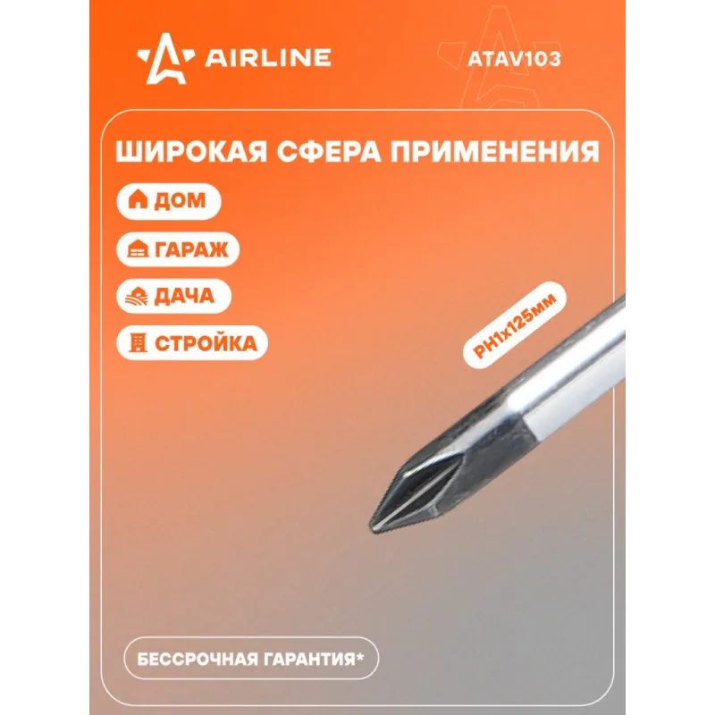 Отвертка крестовая PH1x125мм, магнитный наконечник, пласт.подвес Описание: Отвертка крестовая PH1 от бренда AIRLINE - многофункциональный инструмент для ремонта и строительства для машины, для дома, для дачи, для авто. Сочетание твёрдых и мягких элементов рукоятки оптимально распределяет усилие, прилагаемое к инструменту, и предотвращает проскальзывание. Эргономичный дизайн облегчает работу. Отвёртки AIRLINE удобно подвешиваются за специальное отверстие. Лезвие отвёрток AIRLINE изготовлено из хром-ванадиевой стали, жало подвержено индукционной закалке и фосфатировано. Особенности: - Магнитный наконечник; - Подойдут для дома, для гаража, для любых бытовых задач, многофункциональная, для ремонта, для сборки мебели, для автомобиля; - Размер: PH1; - Высокая степень передачи крутящего момента от отвертки; - Материал стержня - CRV; - Материал рукоятки - двухкомпонентная, прорезиненная; - Подвес инструмента; Товар официального производителя AIRLINE будет идеальным дополнение в профессиональный набор инструментов автомобилиста. Отлично подойдет в качестве практичного подарка мужчинам, женщинам, автомобилисту, папе, отцу, мужу, парню и другу на Новый год, день рождения и без повода, незаменимый строительный инструмент и оснастка сверление, долбление, закручивание для дома, автосервиса, для профессионального использования. Характеристики: Артикул: ATAV103 Размер: PH1 Длина жала отвёртки, мм: 125 Материал стержня: CRV Материал рукоятки: двухкомпонентная Комплектация: Отвертка - 1 шт Гарантия: от 1 года.