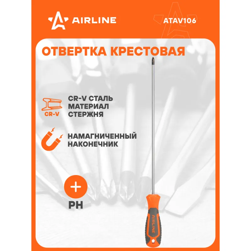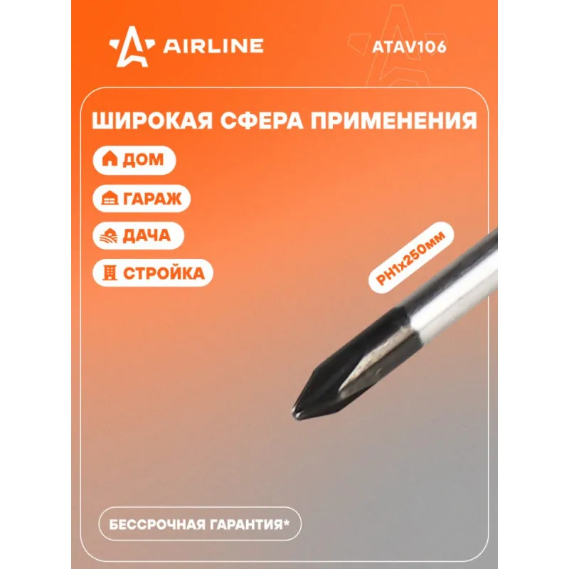 Отвертка крестовая PH1x250мм, магнитный наконечник, пласт.подвес Описание: Отвертка крестовая PH1 от бренда AIRLINE - многофункциональный инструмент для ремонта и строительства для машины, для дома, для дачи, для авто. Сочетание твёрдых и мягких элементов рукоятки оптимально распределяет усилие, прилагаемое к инструменту, и предотвращает проскальзывание. Эргономичный дизайн облегчает работу. Отвёртки AIRLINE удобно подвешиваются за специальное отверстие. Лезвие отвёрток AIRLINE изготовлено из хром-ванадиевой стали, жало подвержено индукционной закалке и фосфатировано. Особенности: - Магнитный наконечник; - Подойдут для дома, для гаража, для любых бытовых задач, многофункциональная, для ремонта, для сборки мебели, для автомобиля; - Размер: PH1; - Высокая степень передачи крутящего момента от отвертки; - Материал стержня - CRV; - Материал рукоятки - двухкомпонентная, прорезиненная; - Подвес инструмента; Товар официального производителя AIRLINE будет идеальным дополнение в профессиональный набор инструментов автомобилиста. Отлично подойдет в качестве практичного подарка мужчинам, женщинам, автомобилисту, папе, отцу, мужу, парню и другу на Новый год, день рождения и без повода, незаменимый строительный инструмент и оснастка сверление, долбление, закручивание для дома, автосервиса, для профессионального использования. Характеристики: Артикул: ATAV106 Размер: PH1 Длина жала отвёртки, мм: 250 Материал стержня: CRV Материал рукоятки: двухкомпонентная Комплектация: Отвертка - 1 шт Гарантия: от 1 года.