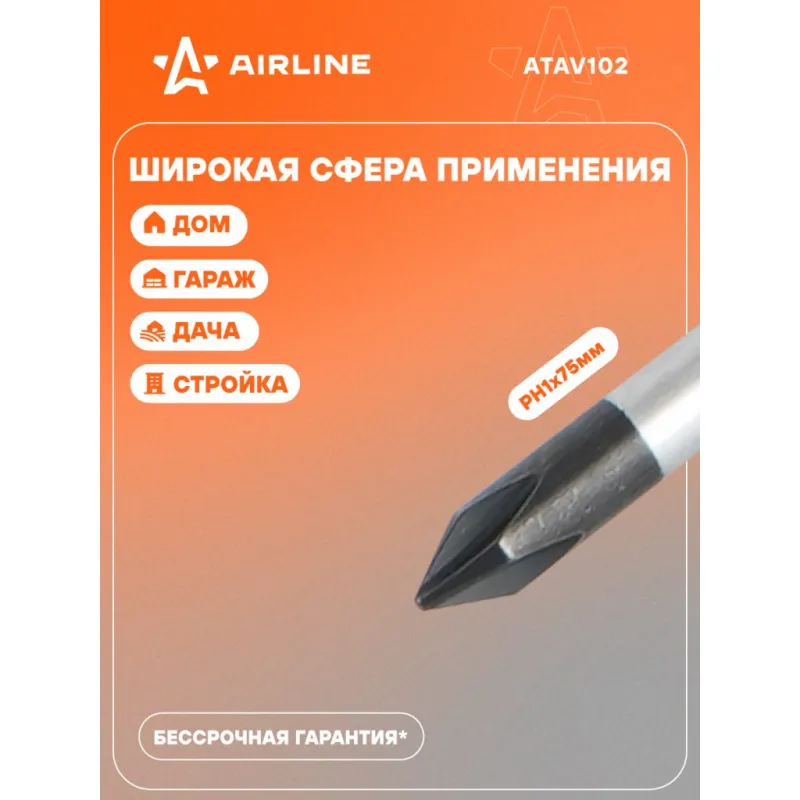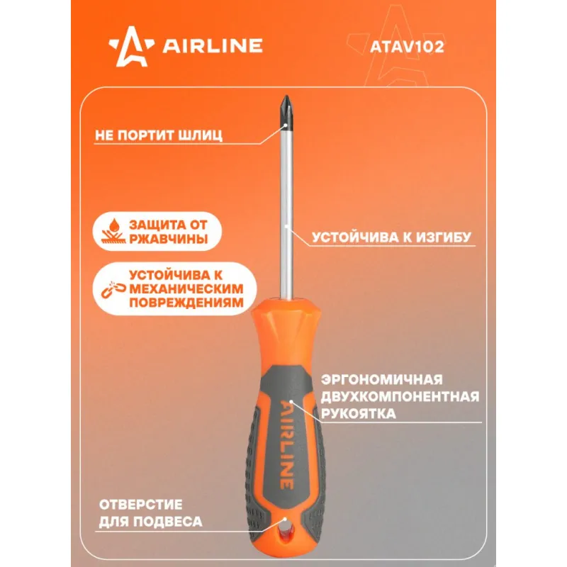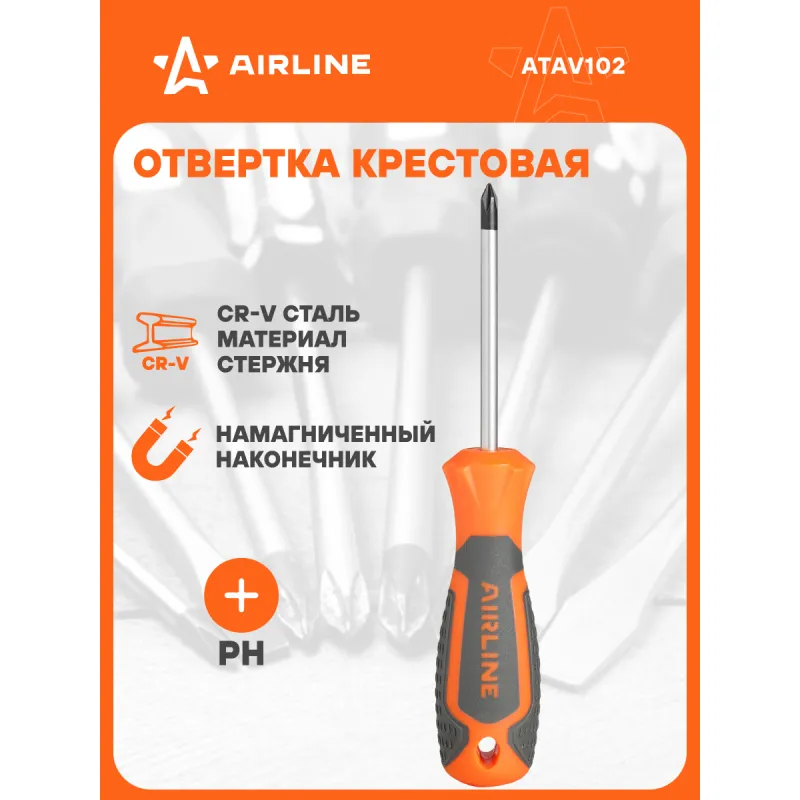 Отвертка крестовая PH1x75мм, магнитный наконечник, пласт.подвес Описание: Отвертка крестовая PH1 от бренда AIRLINE - многофункциональный инструмент для ремонта и строительства для машины, для дома, для дачи, для авто. Сочетание твёрдых и мягких элементов рукоятки оптимально распределяет усилие, прилагаемое к инструменту, и предотвращает проскальзывание. Эргономичный дизайн облегчает работу. Отвёртки AIRLINE удобно подвешиваются за специальное отверстие. Лезвие отвёрток AIRLINE изготовлено из хром-ванадиевой стали, жало подвержено индукционной закалке и фосфатировано. Особенности: - Магнитный наконечник; - Подойдут для дома, для гаража, для любых бытовых задач, многофункциональная, для ремонта, для сборки мебели, для автомобиля; - Размер: PH1; - Высокая степень передачи крутящего момента от отвертки; - Материал стержня - CRV; - Материал рукоятки - двухкомпонентная, прорезиненная; - Подвес инструмента; Товар официального производителя AIRLINE будет идеальным дополнение в профессиональный набор инструментов автомобилиста. Отлично подойдет в качестве практичного подарка мужчинам, женщинам, автомобилисту, папе, отцу, мужу, парню и другу на Новый год, день рождения и без повода, незаменимый строительный инструмент и оснастка сверление, долбление, закручивание для дома, автосервиса, для профессионального использования. Характеристики: Артикул: ATAV102 Размер: PH1 Длина жала отвёртки, мм: 75 Материал стержня: CRV Материал рукоятки: двухкомпонентная Комплектация: Отвертка - 1 шт Гарантия: от 1 года.