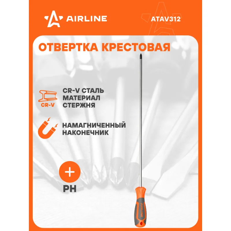 Отвертка крестовая PH2x350мм, магнитный наконечник, пласт.подвес Описание: Отвертка крестовая PH2 от бренда AIRLINE - многофункциональный инструмент для ремонта и строительства для машины, для дома, для дачи, для авто. Сочетание твёрдых и мягких элементов рукоятки оптимально распределяет усилие, прилагаемое к инструменту, и предотвращает проскальзывание. Эргономичный дизайн облегчает работу. Отвёртки AIRLINE удобно подвешиваются за специальное отверстие. Лезвие отвёрток AIRLINE изготовлено из хром-ванадиевой стали, жало подвержено индукционной закалке и фосфатировано. Особенности: - Магнитный наконечник; - Подойдут для дома, для гаража, для любых бытовых задач, многофункциональная, для ремонта, для сборки мебели, для автомобиля; - Размер: PH2; - Высокая степень передачи крутящего момента от отвертки; - Материал стержня - CRV; - Материал рукоятки - двухкомпонентная, прорезиненная; - Подвес инструмента; Товар официального производителя AIRLINE будет идеальным дополнение в профессиональный набор инструментов автомобилиста. Отлично подойдет в качестве практичного подарка мужчинам, женщинам, автомобилисту, папе, отцу, мужу, парню и другу на Новый год, день рождения и без повода, незаменимый строительный инструмент и оснастка сверление, долбление, закручивание для дома, автосервиса, для профессионального использования. Характеристики: Артикул: ATAV312 Размер: PH2 Длина жала отвёртки, мм: 350 Материал стержня: CRV Материал рукоятки: двухкомпонентная Комплектация: Отвертка - 1 шт Гарантия: от 1 года.