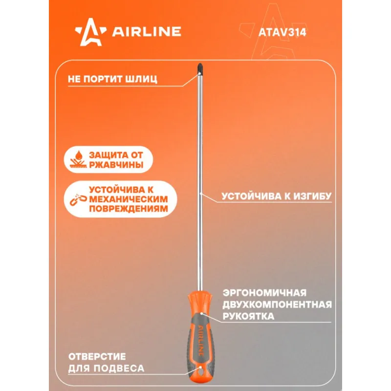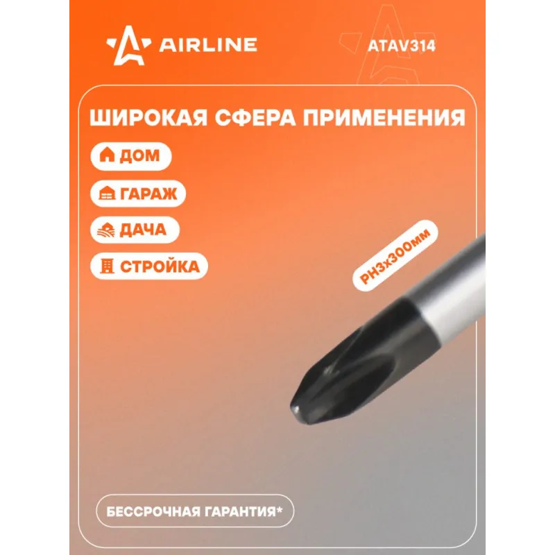 Отвертка крестовая PH3x300мм, магнитный наконечник, пласт.подвес Описание: Отвертка крестовая PH3 от бренда AIRLINE - многофункциональный инструмент для ремонта и строительства для машины, для дома, для дачи, для авто. Сочетание твёрдых и мягких элементов рукоятки оптимально распределяет усилие, прилагаемое к инструменту, и предотвращает проскальзывание. Эргономичный дизайн облегчает работу. Отвёртки AIRLINE удобно подвешиваются за специальное отверстие. Лезвие отвёрток AIRLINE изготовлено из хром-ванадиевой стали, жало подвержено индукционной закалке и фосфатировано. Особенности: - Магнитный наконечник; - Подойдут для дома, для гаража, для любых бытовых задач, многофункциональная, для ремонта, для сборки мебели, для автомобиля; - Размер: PH3; - Высокая степень передачи крутящего момента от отвертки; - Материал стержня - CRV; - Материал рукоятки - двухкомпонентная, прорезиненная; - Подвес инструмента; Товар официального производителя AIRLINE будет идеальным дополнение в профессиональный набор инструментов автомобилиста. Отлично подойдет в качестве практичного подарка мужчинам, женщинам, автомобилисту, папе, отцу, мужу, парню и другу на Новый год, день рождения и без повода, незаменимый строительный инструмент и оснастка сверление, долбление, закручивание для дома, автосервиса, для профессионального использования. Характеристики: Артикул: ATAV314 Размер: PH3 Длина жала отвёртки, мм: 300 Материал стержня: CRV Материал рукоятки: двухкомпонентная Комплектация: Отвертка - 1 шт Гарантия: от 1 года.