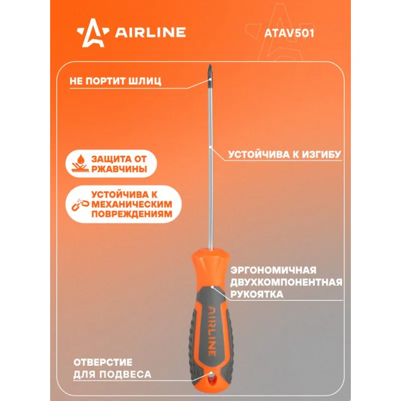 Отвертка крестовая PZ0x100мм, магнитный наконечник, пласт.подвес Описание: Отвертка крестовая PZ0 от бренда AIRLINE - многофункциональный инструмент для ремонта и строительства для машины, для дома, для дачи, для авто. Сочетание твёрдых и мягких элементов рукоятки оптимально распределяет усилие, прилагаемое к инструменту, и предотвращает проскальзывание. Эргономичный дизайн облегчает работу. Отвёртки AIRLINE удобно подвешиваются за специальное отверстие. Лезвие отвёрток AIRLINE изготовлено из хром-ванадиевой стали, жало подвержено индукционной закалке и фосфатировано. Особенности: - Магнитный наконечник; - Подойдут для дома, для гаража, для любых бытовых задач, многофункциональная, для ремонта, для сборки мебели, для автомобиля; - Размер: PZ0; - Высокая степень передачи крутящего момента от отвертки; - Материал стержня - CRV; - Материал рукоятки - двухкомпонентная, прорезиненная; - Подвес инструмента; Товар официального производителя AIRLINE. Товар официального производителя AIRLINE будет идеальным дополнение в профессиональный набор инструментов автомобилиста. Отлично подойдет в качестве практичного подарка мужчинам, женщинам, автомобилисту, папе, отцу, мужу, парню и другу на Новый год, день рождения и без повода, незаменимый строительный инструмент и оснастка сверление, долбление, закручивание для дома, автосервиса, для профессионального использования. Характеристики: Артикул: ATAV501 Размер: PZ0 Длина жала отвёртки, мм: 100 Материал стержня: CRV Материал рукоятки: двухкомпонентная Комплектация: Отвертка - 1 шт Гарантия: от 1 года.
