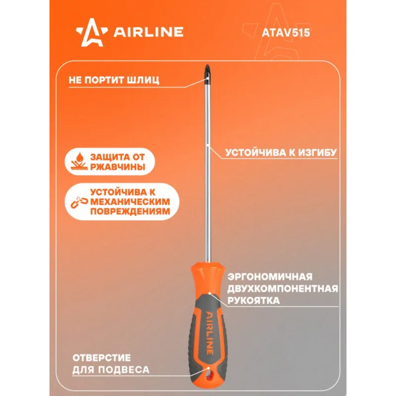 Отвертка крестовая PZ1x150мм, магнитный наконечник, пласт.подвес Описание: Отвертка крестовая PZ1 от бренда AIRLINE - многофункциональный инструмент для ремонта и строительства для машины, для дома, для дачи, для авто. Сочетание твёрдых и мягких элементов рукоятки оптимально распределяет усилие, прилагаемое к инструменту, и предотвращает проскальзывание. Эргономичный дизайн облегчает работу. Отвёртки AIRLINE удобно подвешиваются за специальное отверстие. Лезвие отвёрток AIRLINE изготовлено из хром-ванадиевой стали, жало подвержено индукционной закалке и фосфатировано. Особенности: - Магнитный наконечник; - Подойдут для дома, для гаража, для любых бытовых задач, многофункциональная, для ремонта, для сборки мебели, для автомобиля; - Размер: PZ1; - Высокая степень передачи крутящего момента от отвертки; - Материал стержня - CRV; - Материал рукоятки - двухкомпонентная, прорезиненная; - Подвес инструмента; Товар официального производителя AIRLINE. Товар официального производителя AIRLINE будет идеальным дополнение в профессиональный набор инструментов автомобилиста. Отлично подойдет в качестве практичного подарка мужчинам, женщинам, автомобилисту, папе, отцу, мужу, парню и другу на Новый год, день рождения и без повода, незаменимый строительный инструмент и оснастка сверление, долбление, закручивание для дома, автосервиса, для профессионального использования. Характеристики: Артикул: ATAV515 Размер: PZ1 Длина жала отвёртки, мм: 150 Материал стержня: CRV Материал рукоятки: двухкомпонентная Комплектация: Отвертка - 1 шт Гарантия: от 1 года.