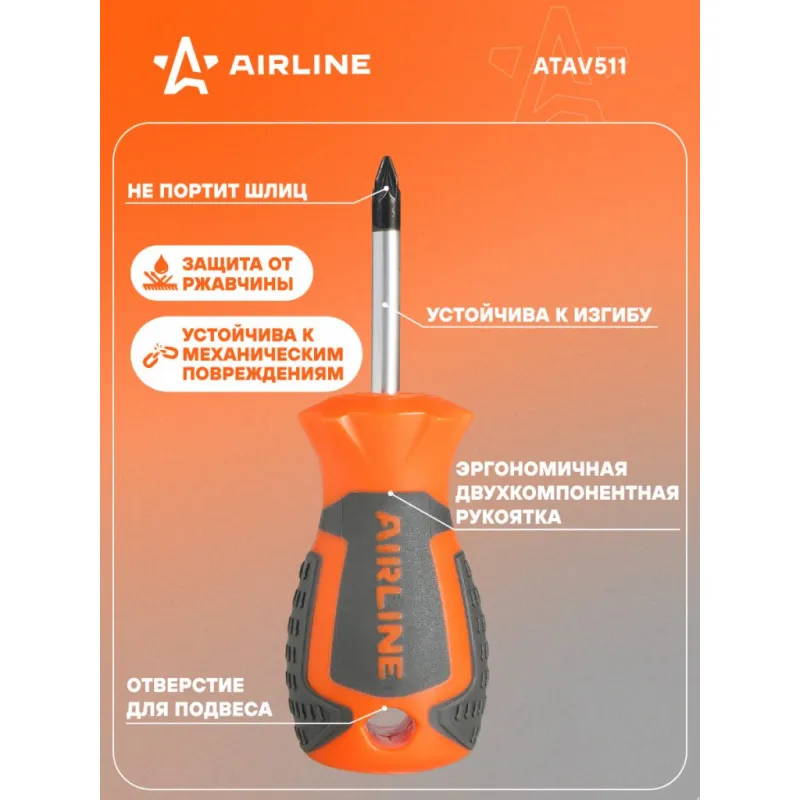 Отвертка крестовая PZ1x38мм, магнитный наконечник, пласт.подвес Описание: Отвертка крестовая PZ1 от бренда AIRLINE - многофункциональный инструмент для ремонта и строительства для машины, для дома, для дачи, для авто. Сочетание твёрдых и мягких элементов рукоятки оптимально распределяет усилие, прилагаемое к инструменту, и предотвращает проскальзывание. Эргономичный дизайн облегчает работу. Отвёртки AIRLINE удобно подвешиваются за специальное отверстие. Лезвие отвёрток AIRLINE изготовлено из хром-ванадиевой стали, жало подвержено индукционной закалке и фосфатировано. Особенности: - Магнитный наконечник; - Подойдут для дома, для гаража, для любых бытовых задач, многофункциональная, для ремонта, для сборки мебели, для автомобиля; - Размер: PZ1; - Высокая степень передачи крутящего момента от отвертки; - Материал стержня - CRV; - Материал рукоятки - двухкомпонентная, прорезиненная; - Подвес инструмента; Товар официального производителя AIRLINE. Товар официального производителя AIRLINE будет идеальным дополнение в профессиональный набор инструментов автомобилиста. Отлично подойдет в качестве практичного подарка мужчинам, женщинам, автомобилисту, папе, отцу, мужу, парню и другу на Новый год, день рождения и без повода, незаменимый строительный инструмент и оснастка сверление, долбление, закручивание для дома, автосервиса, для профессионального использования. Характеристики: Артикул: ATAV511 Размер: PZ1 Длина жала отвёртки, мм: 38 Материал стержня: CRV Материал рукоятки: двухкомпонентная Комплектация: Отвертка - 1 шт Гарантия: от 1 года.