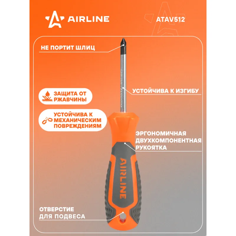 Отвертка крестовая PZ1x60мм, магнитный наконечник, пласт.подвес Описание: Отвертка крестовая PZ1 от бренда AIRLINE - многофункциональный инструмент для ремонта и строительства для машины, для дома, для дачи, для авто. Сочетание твёрдых и мягких элементов рукоятки оптимально распределяет усилие, прилагаемое к инструменту, и предотвращает проскальзывание. Эргономичный дизайн облегчает работу. Отвёртки AIRLINE удобно подвешиваются за специальное отверстие. Лезвие отвёрток AIRLINE изготовлено из хром-ванадиевой стали, жало подвержено индукционной закалке и фосфатировано. Особенности: - Магнитный наконечник; - Подойдут для дома, для гаража, для любых бытовых задач, многофункциональная, для ремонта, для сборки мебели, для автомобиля; - Размер: PZ1; - Высокая степень передачи крутящего момента от отвертки; - Материал стержня - CRV; - Материал рукоятки - двухкомпонентная, прорезиненная; - Подвес инструмента; Товар официального производителя AIRLINE. Товар официального производителя AIRLINE будет идеальным дополнение в профессиональный набор инструментов автомобилиста. Отлично подойдет в качестве практичного подарка мужчинам, женщинам, автомобилисту, папе, отцу, мужу, парню и другу на Новый год, день рождения и без повода, незаменимый строительный инструмент и оснастка сверление, долбление, закручивание для дома, автосервиса, для профессионального использования. Характеристики: Артикул: ATAV512 Размер: PZ1 Длина жала отвёртки, мм: 60 Материал стержня: CRV Материал рукоятки: двухкомпонентная Комплектация: Отвертка - 1 шт Гарантия: от 1 года.