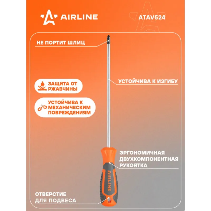 Отвертка крестовая PZ2x200мм, магнитный наконечник, пласт.подвес Описание: Отвертка крестовая PZ2 от бренда AIRLINE - многофункциональный инструмент для ремонта и строительства для машины, для дома, для дачи, для авто. Сочетание твёрдых и мягких элементов рукоятки оптимально распределяет усилие, прилагаемое к инструменту, и предотвращает проскальзывание. Эргономичный дизайн облегчает работу. Отвёртки AIRLINE удобно подвешиваются за специальное отверстие. Лезвие отвёрток AIRLINE изготовлено из хром-ванадиевой стали, жало подвержено индукционной закалке и фосфатировано. Особенности: - Магнитный наконечник; - Подойдут для дома, для гаража, для любых бытовых задач, многофункциональная, для ремонта, для сборки мебели, для автомобиля; - Размер: PZ2; - Высокая степень передачи крутящего момента от отвертки; - Материал стержня - CRV; - Материал рукоятки - двухкомпонентная, прорезиненная; - Подвес инструмента; Товар официального производителя AIRLINE. Товар официального производителя AIRLINE будет идеальным дополнение в профессиональный набор инструментов автомобилиста. Отлично подойдет в качестве практичного подарка мужчинам, женщинам, автомобилисту, папе, отцу, мужу, парню и другу на Новый год, день рождения и без повода, незаменимый строительный инструмент и оснастка сверление, долбление, закручивание для дома, автосервиса, для профессионального использования. Характеристики: Артикул: ATAV524 Размер: PZ2 Длина жала отвёртки, мм: 200 Материал стержня: CRV Материал рукоятки: двухкомпонентная Комплектация: Отвертка - 1 шт Гарантия: от 1 года.
