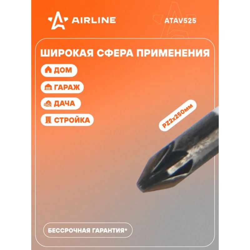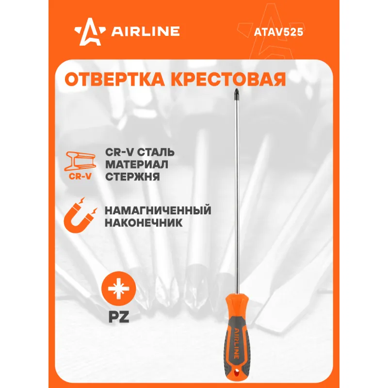Отвертка крестовая PZ2x250мм, магнитный наконечник, пласт.подвес Описание: Отвертка крестовая PZ2 от бренда AIRLINE - многофункциональный инструмент для ремонта и строительства для машины, для дома, для дачи, для авто. Сочетание твёрдых и мягких элементов рукоятки оптимально распределяет усилие, прилагаемое к инструменту, и предотвращает проскальзывание. Эргономичный дизайн облегчает работу. Отвёртки AIRLINE удобно подвешиваются за специальное отверстие. Лезвие отвёрток AIRLINE изготовлено из хром-ванадиевой стали, жало подвержено индукционной закалке и фосфатировано. Особенности: - Магнитный наконечник; - Подойдут для дома, для гаража, для любых бытовых задач, многофункциональная, для ремонта, для сборки мебели, для автомобиля; - Размер: PZ2; - Высокая степень передачи крутящего момента от отвертки; - Материал стержня - CRV; - Материал рукоятки - двухкомпонентная, прорезиненная; - Подвес инструмента; Товар официального производителя AIRLINE. Товар официального производителя AIRLINE будет идеальным дополнение в профессиональный набор инструментов автомобилиста. Отлично подойдет в качестве практичного подарка мужчинам, женщинам, автомобилисту, папе, отцу, мужу, парню и другу на Новый год, день рождения и без повода, незаменимый строительный инструмент и оснастка сверление, долбление, закручивание для дома, автосервиса, для профессионального использования. Характеристики: Артикул: ATAV525 Размер: PZ2 Длина жала отвёртки, мм: 250 Материал стержня: CRV Материал рукоятки: двухкомпонентная Комплектация: Отвёртка - 1 шт Гарантия: от 1 года.