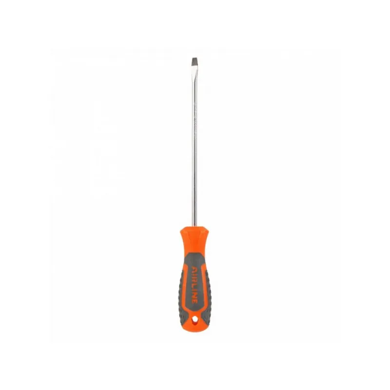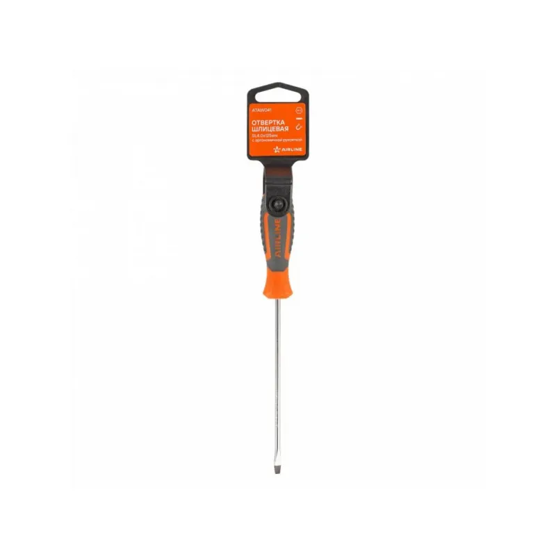 Отвертка шлицевая SL4.0x125мм, магнитный наконечник, пласт.подвес Описание: Отвертка прямая шлицевая SL4.0 от бренда AIRLINE многофункциональный инструмент для ремонта и строительства для машины, для дома, для дачи, для авто. Композитные рукоятки отвёрток выполнены из прочного пластика в сочетании с более мягкими резиновыми вставками в местах хвата. Такая компоновка равномерно распределяет прилагаемое усилие, обеспечивая безопасную работу для кисти и запястья. Эргономичный дизайн облегчает работу. Лезвие отвёрток AIRLINE изготовлено из хром-ванадиевой стали, жало подвержено индукционной закалке и фосфатировано. Особенности: - Магнитный наконечник; - Эргономичная ручка; - Подойдут для дома, для гаража, для любых бытовых задач, многофункциональная, для ремонта, для сборки мебели, для автомобиля; - Размер: SL4.0; - Длина жала отвёртки - 125 мм; - Высокая степень передачи крутящего момента от отвертки; - Материал стержня - CRV; - Материал рукоятки - двухкомпонентная, прорезиненная, стойки к воздействию масел и бензина; - Подвес инструмента; Товар официального производителя AIRLINE будет идеальным дополнение в профессиональный набор инструментов автомобилиста. Отлично подойдет в качестве практичного подарка мужчинам, женщинам, автомобилисту, папе, отцу, мужу, парню и другу на Новый год, день рождения и без повода, незаменимый строительный инструмент и оснастка сверление, долбление, закручивание для дома, автосервиса, для профессионального использования. Характеристики: Артикул: ATAW041 Размер: SL4.0 Длина жала отвёртки, мм: 125 Материал стержня: CRV Материал рукоятки: двухкомпонентная Комплектация: Отвёртка - 1 шт Гарантия: от 1 года.