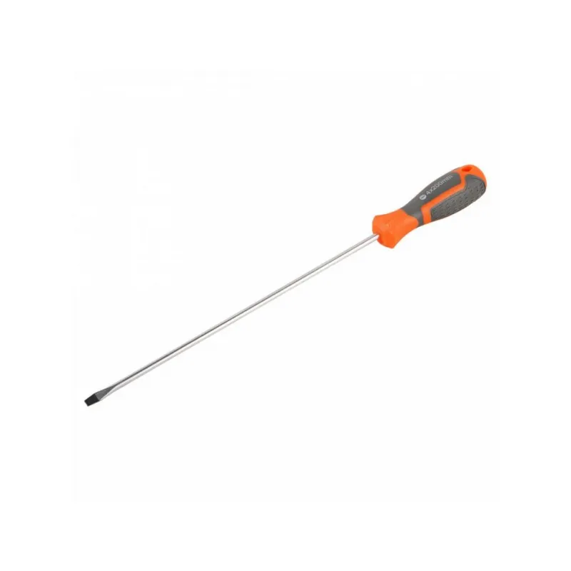 Отвертка шлицевая SL4.0x200мм, магнитный наконечник, пласт.подвес Описание: Отвертка прямая шлицевая SL4.0 от бренда AIRLINE многофункциональный инструмент для ремонта и строительства для машины, для дома, для дачи, для авто. Композитные рукоятки отвёрток выполнены из прочного пластика в сочетании с более мягкими резиновыми вставками в местах хвата. Такая компоновка равномерно распределяет прилагаемое усилие, обеспечивая безопасную работу для кисти и запястья. Эргономичный дизайн облегчает работу. Лезвие отвёрток AIRLINE изготовлено из хром-ванадиевой стали, жало подвержено индукционной закалке и фосфатировано. Особенности: - Магнитный наконечник; - Эргономичная ручка; - Подойдут для дома, для гаража, для любых бытовых задач, многофункциональная, для ремонта, для сборки мебели, для автомобиля; - Размер: SL4.0; - Длина жала отвёртки - 200 мм; - Высокая степень передачи крутящего момента от отвертки; - Материал стержня - CRV; - Материал рукоятки - двухкомпонентная, прорезиненная, стойки к воздействию масел и бензина; - Подвес инструмента; Товар официального производителя AIRLINE будет идеальным дополнение в профессиональный набор инструментов автомобилиста. Отлично подойдет в качестве практичного подарка мужчинам, женщинам, автомобилисту, папе, отцу, мужу, парню и другу на Новый год, день рождения и без повода, незаменимый строительный инструмент и оснастка сверление, долбление, закручивание для дома, автосервиса, для профессионального использования. Характеристики: Артикул: ATAW043 Размер: SL4.0 Длина жала отвёртки, мм: 200 Материал стержня: CRV Материал рукоятки: двухкомпонентная Комплектация: Отвёртка - 1 шт Гарантия: от 1 года.