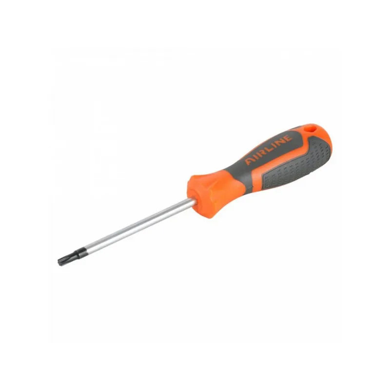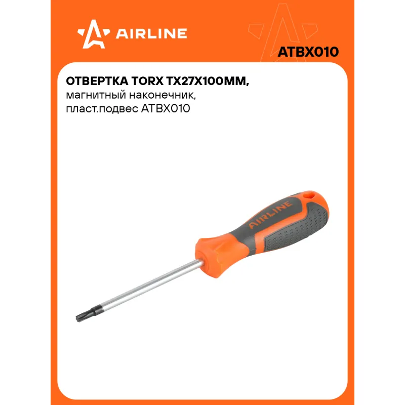 Отвертка TORX TX27x100мм, магнитный наконечник, пласт.подвес Описание: Отвертка TORX TX27 от бренда AIRLINE - многофункциональный инструмент. Сочетание твёрдых и мягких элементов рукоятки оптимально распределяет усилие, прилагаемое к инструменту, и предотвращает проскальзывание. Эргономичный дизайн облегчает работу. Отвёртки AIRLINE удобно подвешиваются за специальное отверстие. Лезвие отвёрток AIRLINE изготовлено из хром-ванадиевой стали, жало подвержено индукционной закалке и фосфатировано. Torx позволит без проблем выкрутить саморез, благодаря максимальному контакту с поверхностью. Особенности: - Магнитный наконечник; - Подойдут для дома, для гаража, для любых бытовых задач, многофункциональная, для ремонта, для сборки мебели, для автомобиля; - Размер: TX27; - Высокая степень передачи крутящего момента от отвертки; - Материал стержня - CRV; - Материал рукоятки - двухкомпонентная, прорезиненная; - Подвес инструмента; Товар официального производителя AIRLINE. Отлично подойдет в качестве практичного подарка мужчинам, женщинам, автомобилисту, папе, отцу, мужу, парню и другу на Новый год, день рождения и без повода, незаменимая вещь для дома, автосервиса, для профессионального использования. Характеристики: Артикул: ATBX010 Размер: TX27 Длина жала отвёртки, мм: 100 Материал стержня: CRV Материал рукоятки: двухкомпонентная Комплектация: Отвертка - 1 шт Гарантия: от 1 года.