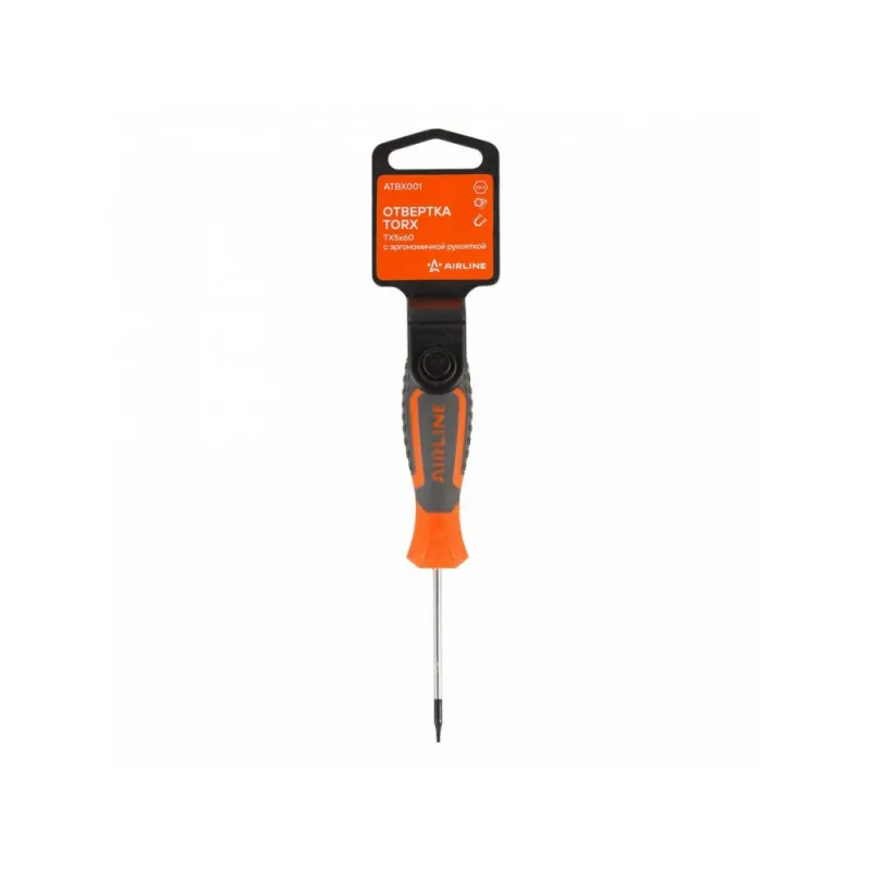 Отвертка TORX TX5x60, магнитный наконечник, пласт.подвес Описание: Отвертка TORX TX5 от бренда AIRLINE - многофункциональный инструмент. Сочетание твёрдых и мягких элементов рукоятки оптимально распределяет усилие, прилагаемое к инструменту, и предотвращает проскальзывание. Эргономичный дизайн облегчает работу. Отвёртки AIRLINE удобно подвешиваются за специальное отверстие. Лезвие отвёрток AIRLINE изготовлено из хром-ванадиевой стали, жало подвержено индукционной закалке и фосфатировано. Torx позволит без проблем выкрутить саморез, благодаря максимальному контакту с поверхностью. Особенности: - Магнитный наконечник; - Подойдут для дома, для гаража, для любых бытовых задач, многофункциональная, для ремонта, для сборки мебели, для автомобиля; - Размер: TX5; - Высокая степень передачи крутящего момента от отвертки; - Материал стержня - CRV; - Материал рукоятки - двухкомпонентная, прорезиненная; - Подвес инструмента; Товар официального производителя AIRLINE. Отлично подойдет в качестве практичного подарка мужчинам, женщинам, автомобилисту, папе, отцу, мужу, парню и другу на Новый год, день рождения и без повода, незаменимая вещь для дома, автосервиса, для профессионального использования. Характеристики: Артикул: ATBX001 Размер: TX5 Длина жала отвёртки, мм: 60 Материал стержня: CRV Материал рукоятки: двухкомпонентная Комплектация: Отвёртка - 1 шт Гарантия: от 1 года.