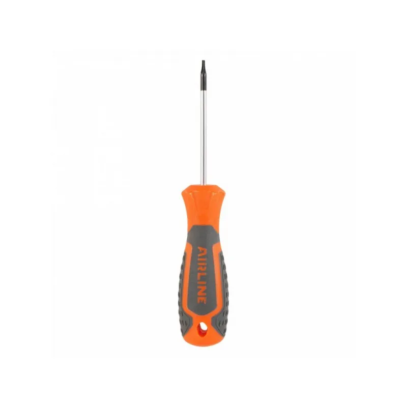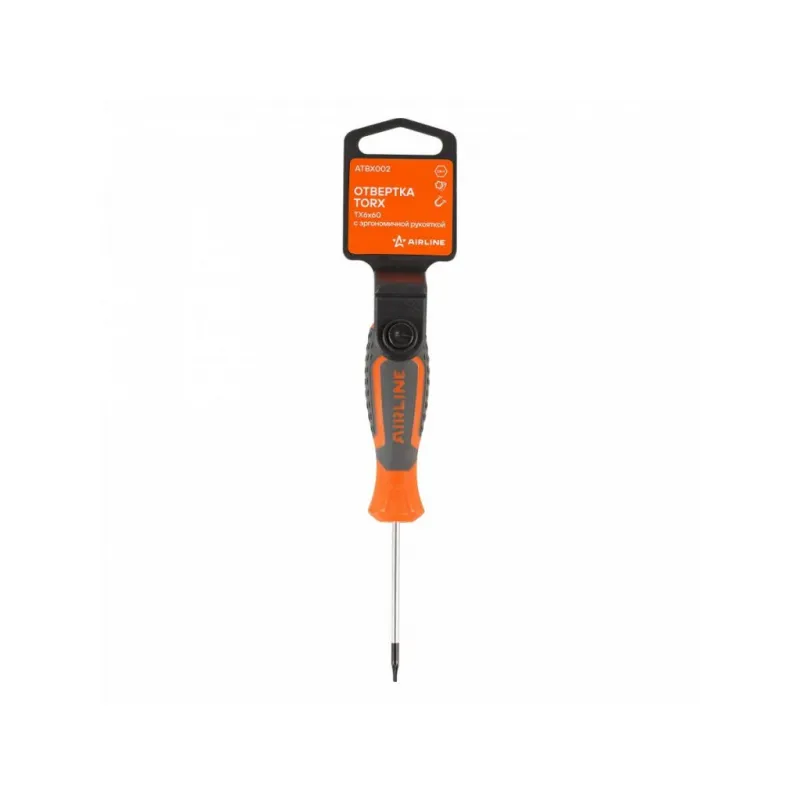 Отвертка TORX TX6x60, магнитный наконечник, пласт.подвес Описание: Отвертка TORX TX6 от бренда AIRLINE - многофункциональный инструмент. Сочетание твёрдых и мягких элементов рукоятки оптимально распределяет усилие, прилагаемое к инструменту, и предотвращает проскальзывание. Эргономичный дизайн облегчает работу. Отвёртки AIRLINE удобно подвешиваются за специальное отверстие. Лезвие отвёрток AIRLINE изготовлено из хром-ванадиевой стали, жало подвержено индукционной закалке и фосфатировано. Torx позволит без проблем выкрутить саморез, благодаря максимальному контакту с поверхностью. Особенности: - Магнитный наконечник; - Подойдут для дома, для гаража, для любых бытовых задач, многофункциональная, для ремонта, для сборки мебели, для автомобиля; - Размер: TX6; - Высокая степень передачи крутящего момента от отвертки; - Материал стержня - CRV; - Материал рукоятки - двухкомпонентная, прорезиненная; - Подвес инструмента; Товар официального производителя AIRLINE. Отлично подойдет в качестве практичного подарка мужчинам, женщинам, автомобилисту, папе, отцу, мужу, парню и другу на Новый год, день рождения и без повода, незаменимая вещь для дома, автосервиса, для профессионального использования. Характеристики: Артикул: ATBX002 Размер: TX6 Длина жала отвёртки, мм: 60 Материал стержня: CRV Материал рукоятки: двухкомпонентная Комплектация: Отвёртка - 1 шт Гарантия: от 1 года.