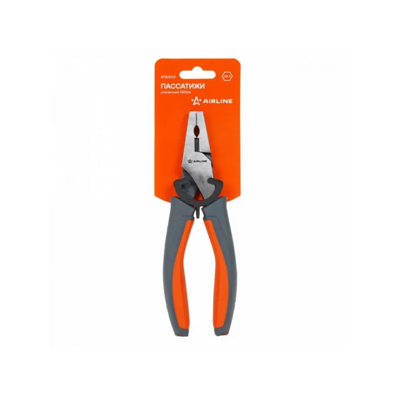 Пассатижи усиленные 180мм Описание: Двухкомпонентные эргономичные рукоятки шарнирно-губцевого инструмента AIRLINE создают комфортное ощущение при работе, а специальная форма гарантирует безопасность труда и снижение усталости при работе. Шарнирно-губцевый инструмент AIRLINE изготовлен из специальной высококачественной инструментальной стали. При производстве заготовки подвергаются закалке и отпуску, для улучшения рабочих характеристик инструментов. Режущие кромки подвергаются индукционной закалке. Применяется финишное покрытие двух типов: хромирование и фосфатирование. Применяется для слесарных работ. Не предназначен для работы в электроустановках. Характеристики: Артикул: ATBJ003 Размер, мм: 180 Комплектация: Пассатижи - 1 шт Гарантия: от 1 года.