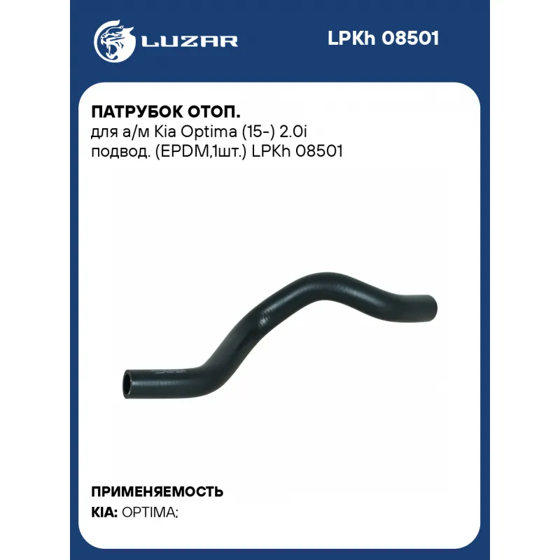 Патрубок отоп. для а/м Kia Optima (15-) 2.0i подвод. (EPDM,1шт.) Характеристики: Артикул: LPKh 08501 OEM номера: 97312-D4100 Трансмиссия: MT/AT Кондиционер: +/- Сопутствующий товар: Радиаторы отопителя: LRh 0850 Количество на автомобиль: 1 Материал: Резина (EPDM) армированная капроновой нитью Применяемость: G4ND Сопутствующий то... Читать полностью →