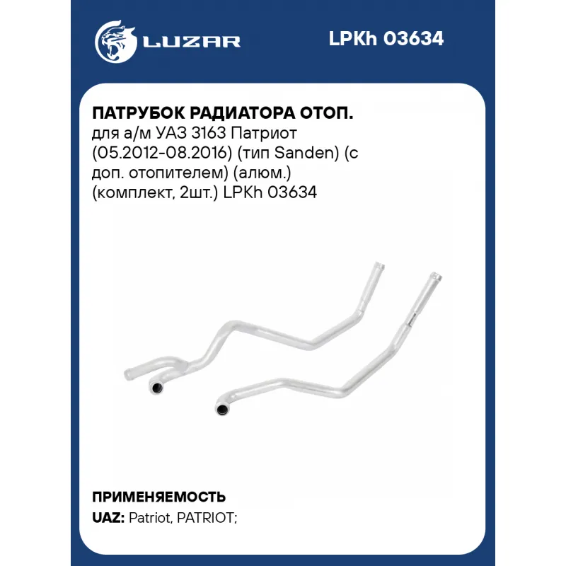 Патрубок радиатора отоп. для а/м УАЗ 3163 Патриот (05.2012-08.2016) (тип Sanden) (с доп. отопителем) (алюм.) (комплект, 2шт.) Характеристики: Артикул: LPKh 03634 OEM номера: 3163-00-8110210-32, 3163-8110210-32, 3163-8101083-32, 3163-00-8101083-32 Трансмиссия: MT/AT Кондиционер: +/- Сопутствующий товар: Радиаторы отопителя: LRh 0... Читать полностью →