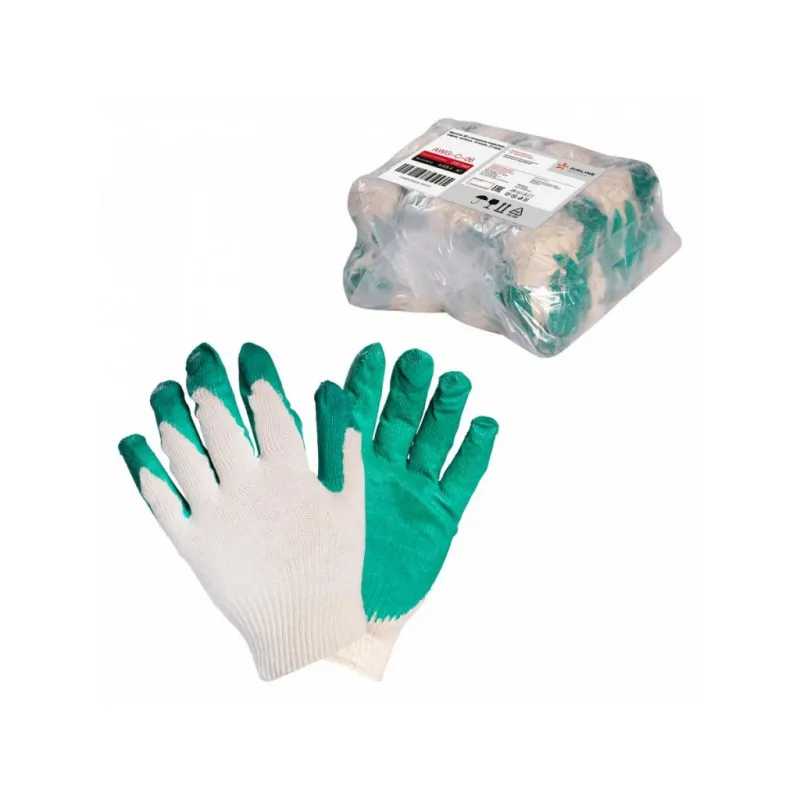 Перчатки трикотажные ХБ с латексным покрытием ладони, зеленые, (1 пара) 13 класс, модель AM_ct24ll Описание: Перчатки трикотажные ХБ с двойным латексным покрытием ладони, рабочие, защитные трикотажные двойные (XL), AWG-C-06 бренда AIRLINE - предназначены для защиты рук от загрязнений и механических повреждений на производстве, строительстве, сельскохозяйственных работах и домашнем быту. Двойное латексное покрытие ладони перчаток обеспечивает хорошее сцепление с инструментом, предотвращая проскальзывание рук во время работы, а также защищают ладони от воды и маслянистых жидкостей. Особенности: - Защита - от механических повреждений (истирания, проколы, порезы); - Класс вязки - 13; - Состав - хб, латекс; - Защита рук от механических воздействий; - Высокая износоустойчивость; - Высокая тактильная чувствительность. - Многоразовые перчатки анатомической формы обеспечивают комфортное облегание ладони и пальцев рук; Товар официального производителя AIRLINE. Прочные перчатки будут хорошим приобретением, практичным подарком, автомобилисту, мужчине и женщине, автолюбителю, папе, отцу, мужу, парню и другу, пригодятся в ремонте, в быту, для уборки, для садовых и огородных работ, для работ в гараже и в строительстве, защита от агрессивного воздействия моющих средств, химических чистящих кислотных и абразивных веществ во время мытья посуды, пола, уборки комнат квартиры, кухни и ванны. Выбирайте подходящую модель перчаток согласно вашему запросу и учитывая особенности перчаток. В нашем магазине, вы найдете широкий ассортимент высококачественных автотоваров для автомобиля, аксессуары для машины, автомобильные наборы в машину, резиновые сверхпрочные хозяйственные бытовые перчатки для уборки; перчатки кожаные, нитриловые, нейлоновые, полиэфирные, трикотажные, акриловые и другое. Характеристики: Артикул: AWG-C-06 Вес пары, г: 40 Класс вязки: 13 Покрытие ладони: да Рисунок покрытия: нет Водонепроницаемость: частичная Размер: XL Защита: от механических повреждений (истирания, проколы, порезы) Комплектация: Перчатки - 1 пар Гарантия: от 1 года.
