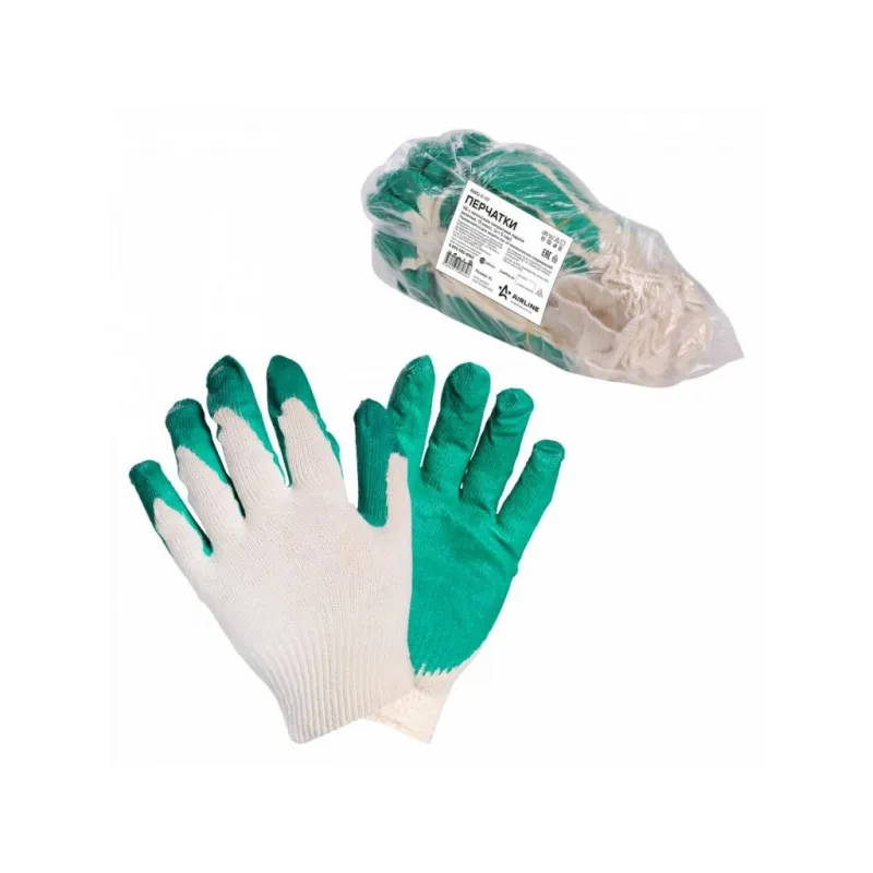 Перчатки трикотажные ХБ с латексным покрытием ладони, зеленые, (к-т 5 пар) 13 класс, модель AM_ct24ll Описание: Перчатки трикотажные ХБ с двойным латексным покрытием ладони, рабочие, защитные трикотажные двойные (XL), AWG-C-07 бренда AIRLINE - предназначены для защиты рук от загрязнений и механических повреждений на производстве, строительстве, сельскохозяйственных работах и домашнем быту. Двойное латексное покрытие ладони перчаток обеспечивает хорошее сцепление с инструментом, предотвращая проскальзывание рук во время работы, а также защищают ладони от воды и маслянистых жидкостей. Особенности: - Защита - от механических повреждений (истирания, проколы, порезы); - Класс вязки - 13; - Состав - хб-85%,ПЭ-15%, латекс; - Защита рук от механических воздействий; - Высокая износоустойчивость; - Высокая тактильная чувствительность. - Многоразовые перчатки анатомической формы обеспечивают комфортное облегание ладони и пальцев рук; Товар официального производителя AIRLINE. Прочные перчатки будут хорошим приобретением, практичным подарком, автомобилисту, мужчине и женщине, автолюбителю, папе, отцу, мужу, парню и другу, пригодятся в ремонте, в быту, для уборки, для садовых и огородных работ, для работ в гараже и в строительстве, защита от агрессивного воздействия моющих средств, химических чистящих кислотных и абразивных веществ во время мытья посуды, пола, уборки комнат квартиры, кухни и ванны. Выбирайте подходящую модель перчаток согласно вашему запросу и учитывая особенности перчаток. В нашем магазине, вы найдете широкий ассортимент высококачественных автотоваров для автомобиля, аксессуары для машины, автомобильные наборы в машину, резиновые сверхпрочные хозяйственные бытовые перчатки для уборки; перчатки кожаные, нитриловые, нейлоновые, полиэфирные, трикотажные, акриловые и другое. Характеристики: Артикул: AWG-C-07 Вес пары, г: 40 Класс вязки: 13 Покрытие ладони: да Рисунок покрытия: нет Водонепроницаемость: частичная Размер: XL Защита: от механических повреждений (истирания, проколы, порезы) Комплектация: Перчатки - 5 пар ПЭ пакет - 1 шт Гарантия: от 1 года.