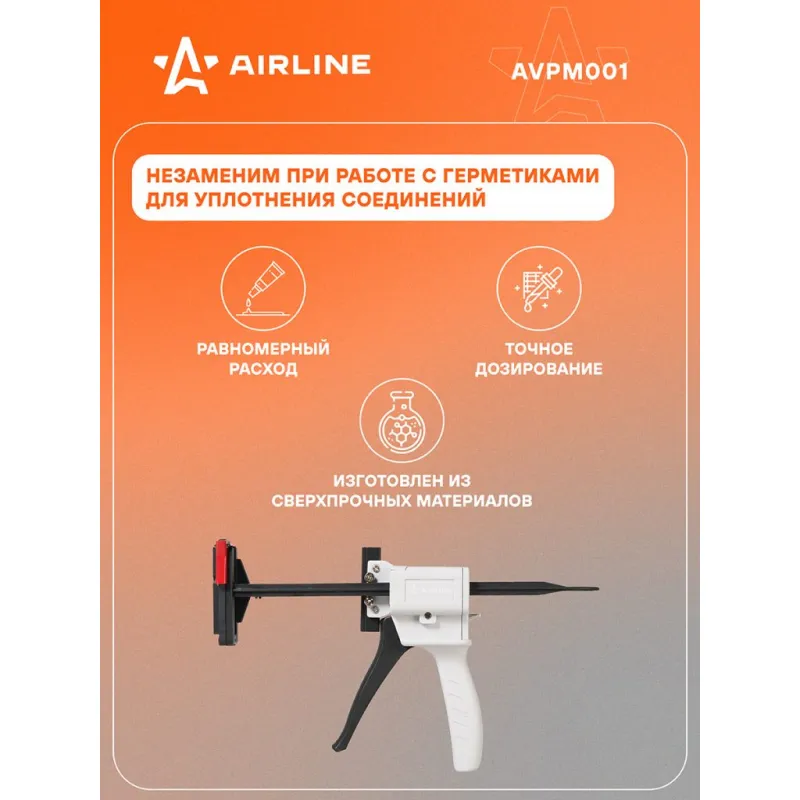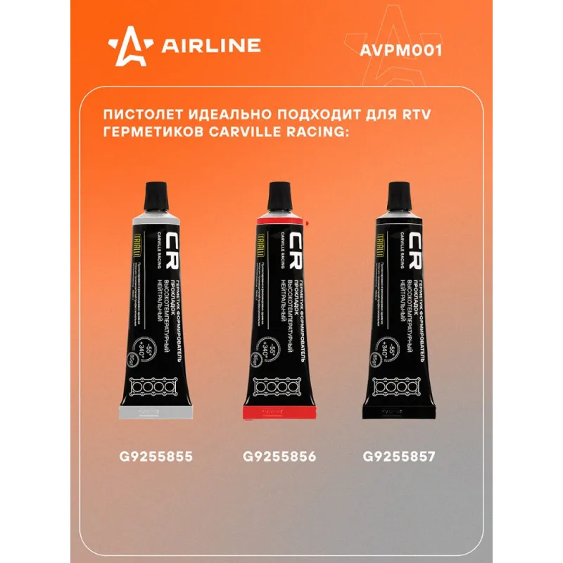 Пистолет-дозатор для герметиков и клея (в тюбиках до 180мм) Описание: Пистолет-дозатор изготовлен из сверхпрочных материалов и используется при работе с герметиками для уплотнения соединений: поддон картера двигателя, клапанная крышка, водяная помпа, впускной коллектор, корпус термостата. Гладкий спусковой механизм AIRLINE AVPM001 обеспечивает равномерный расход герметика при каждом нажатии. Пистолет-дозатор позволяет извлечь из тюбика до 99% содержимого. Удобная ручка позволяет эффективно дозировать содержимое тюбика. Пистолет идеально подходит для RTV герметиков CARVILLE RACING (G9255856, G9255856, G9255857). Характеристики: Артикул: AVPM001 Комплектация: Пистолет-дозатор в коробке - 1 шт Металлическая пластина для защиты тюбика от сдавливания винтами - 1 шт Инструкция - 1 шт Гарантийный талон - 1 шт Гарантия: от 1 года.