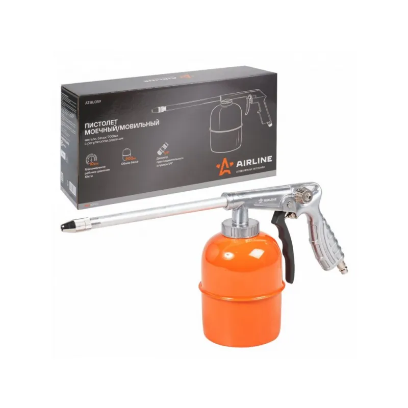 Пистолет моечный/мовильный металл. PRO бачок 900мл. с регулятором давления Описание: Пистолет изготовлен из металла. Имеет съёмный бачок для распыляемого состава. Конструкцией пистолета предусмотрена регулировка расхода воздуха. Характеристики: Артикул: ATBU059 Диаметр присоединительного штуцера: 1/4 Максимальное рабочее давление, атм: 6,3 Ёмкость бачка, мл: 900 Комплектация: Пистолет - 1 шт Бачок - 1 шт Гарантия: от 1 года.