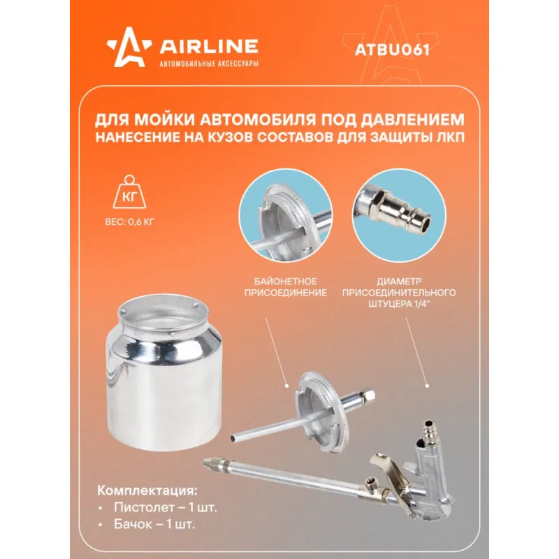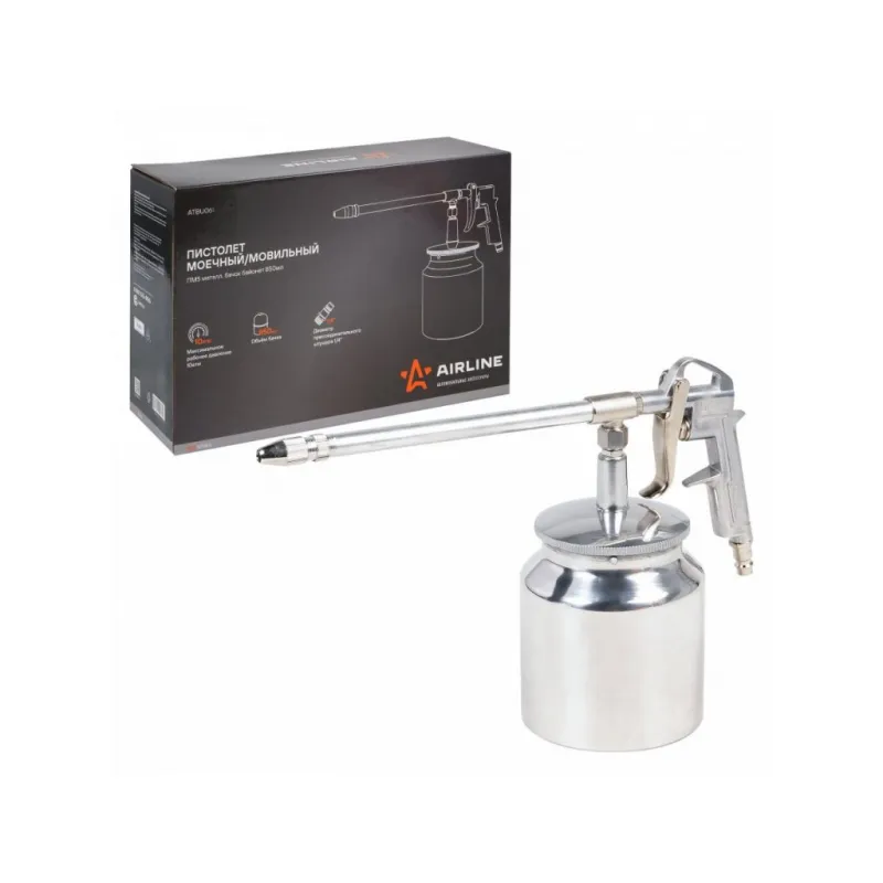 Пистолет моечный/мовильный ПМ5 металл. PRO бачок байонет 850мл Описание: Пистолет изготовлен из металла. Имеет быстросъёмный бачок для распыляемого состава с байонетным присоединением. Характеристики: Артикул: ATBU061 Диаметр присоединительного штуцера: 1/4 Максимальное рабочее давление, атм: 6,3 Ёмкость бачка, мл: 850 Комплек... Читать полностью →