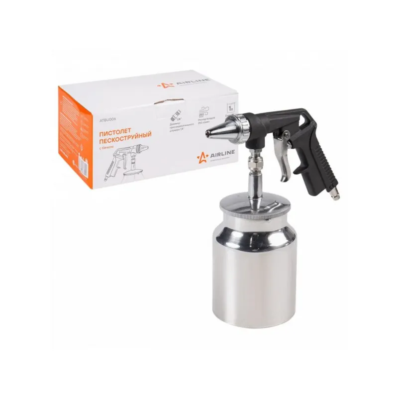 Пистолет пескоструйный с бачком Описание: Корпус пескоструйного пистолета изготовлен из алюминиевого сплава. Абразив подаётся из съёмного бачка. В комплект входит присоединительный фитинг 1/4". Все инструменты производятся по единой технологии на современных автоматизированных предприятиях. Тестирование происходит в собственной испытательной лаборатории, что является залогом качества и надежности. Характеристики: Артикул: ATBU006 Диаметр присоединительного штуцера: 1/4" Максимальное рабочее давление, атм: 8 Ёмкость бачка, мл: 1000 Комплектация: Пистолет пескоструйный - 1 шт Бачок - 1 шт Гарантия: от 1 года.