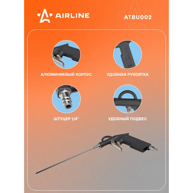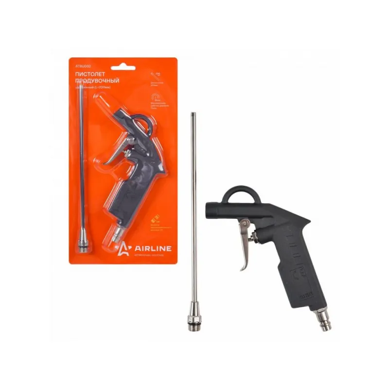 Пистолет продувочный пневматический металл. L=215мм Описание: Корпус продувочного пистолета изготовлен из алюминиевого сплава. В комплект входит присоединительный фитинг 1/4". Характеристики: Артикул: ATBU002 Диаметр присоединительного штуцера: 1/4" Максимальное рабочее давление, атм: 10 Длина сопла, мм: 215 Комплектация: Пистолет продувочный - 1 шт Сопло - 1 шт Гарантия: от 1 года.
