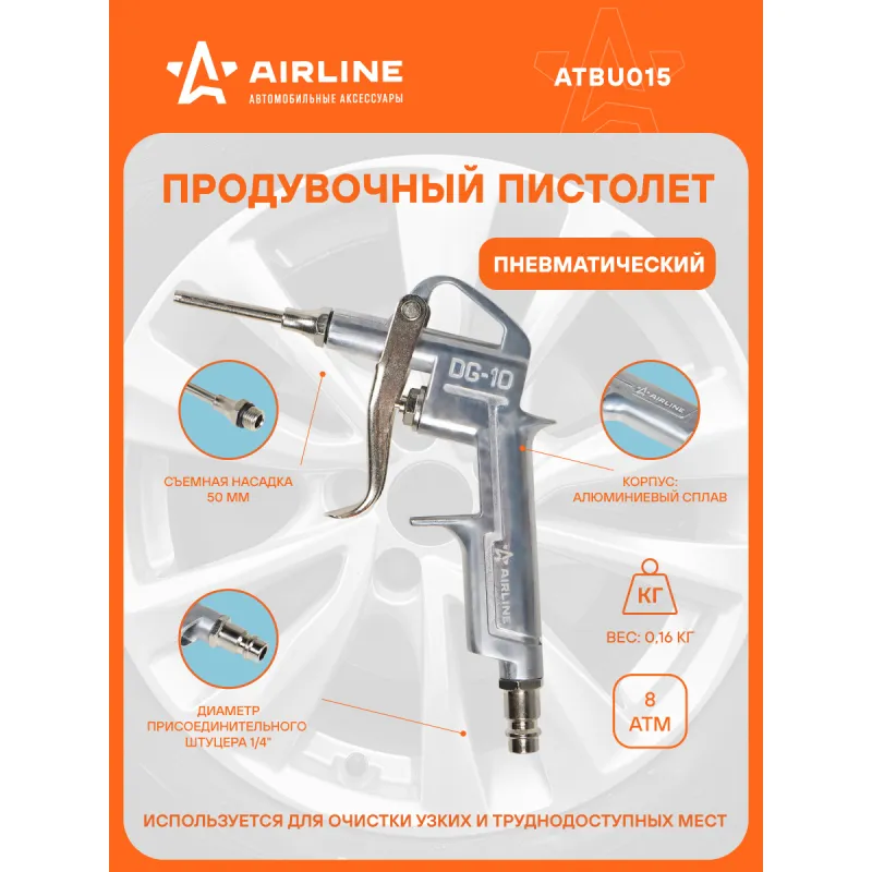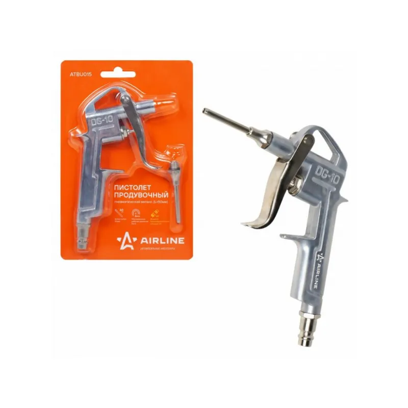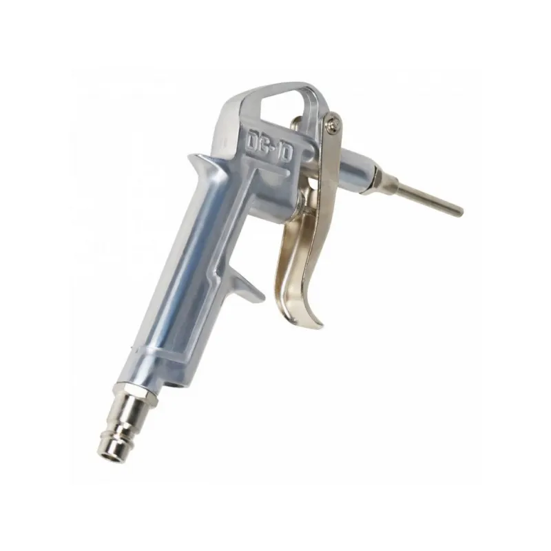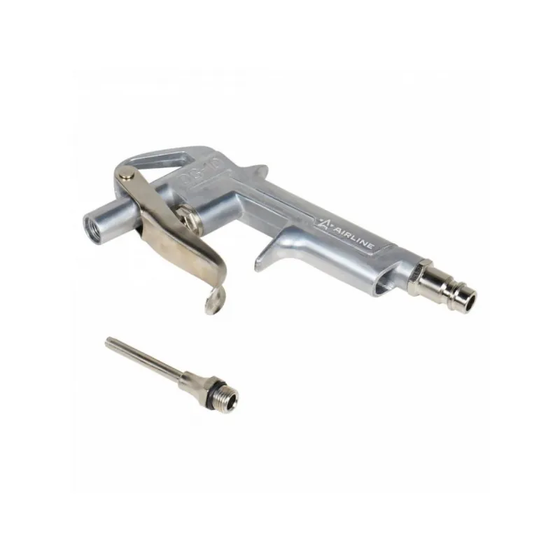 Пистолет продувочный пневматический металл. L=50мм Описание: Корпус продувочного пистолета изготовлен из алюминиевого сплава. В комплект входит присоединительный фитинг 1/4". Характеристики: Артикул: ATBU015 Диаметр присоединительного штуцера: 1/4" Длина сопла, мм: 50 Комплектация: Пистолет продувочный - 1 шт Гарантия: от 1 года.