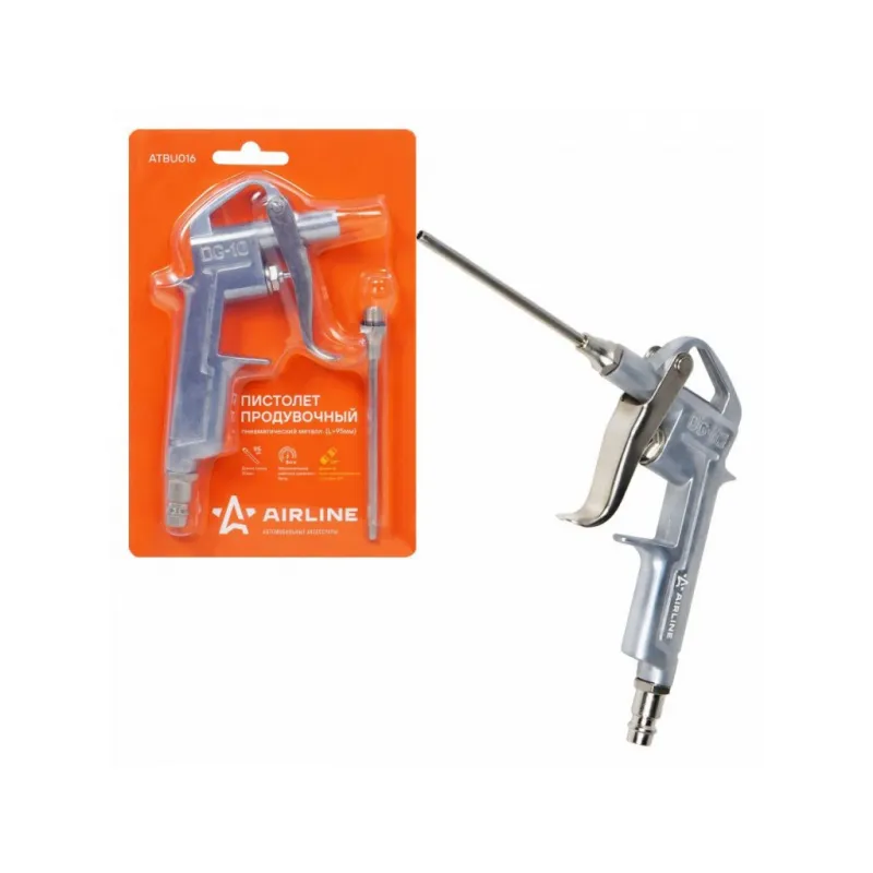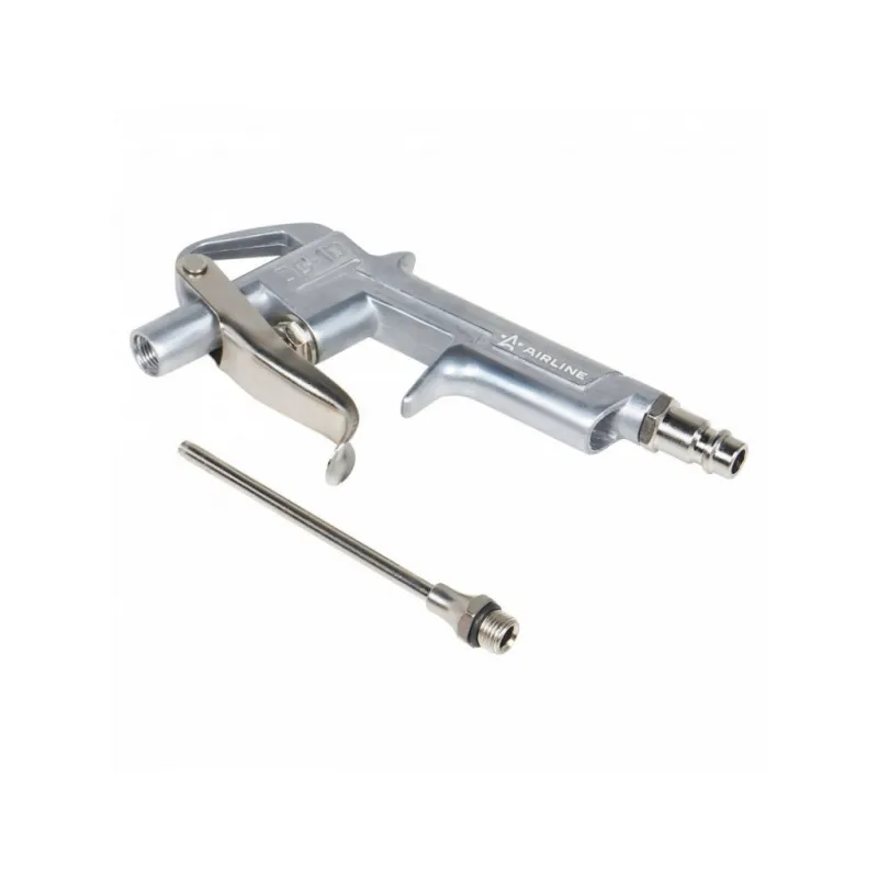 Пистолет продувочный пневматический металл. L=95мм Описание: Корпус продувочного пистолета изготовлен из алюминиевого сплава. В комплект входит присоединительный фитинг 1/4". Характеристики: Артикул: ATBU016 Диаметр присоединительного штуцера: 1/4" Длина сопла, мм: 95 Комплектация: Пистолет продувочный - 1 шт Гарантия: от 1 года.