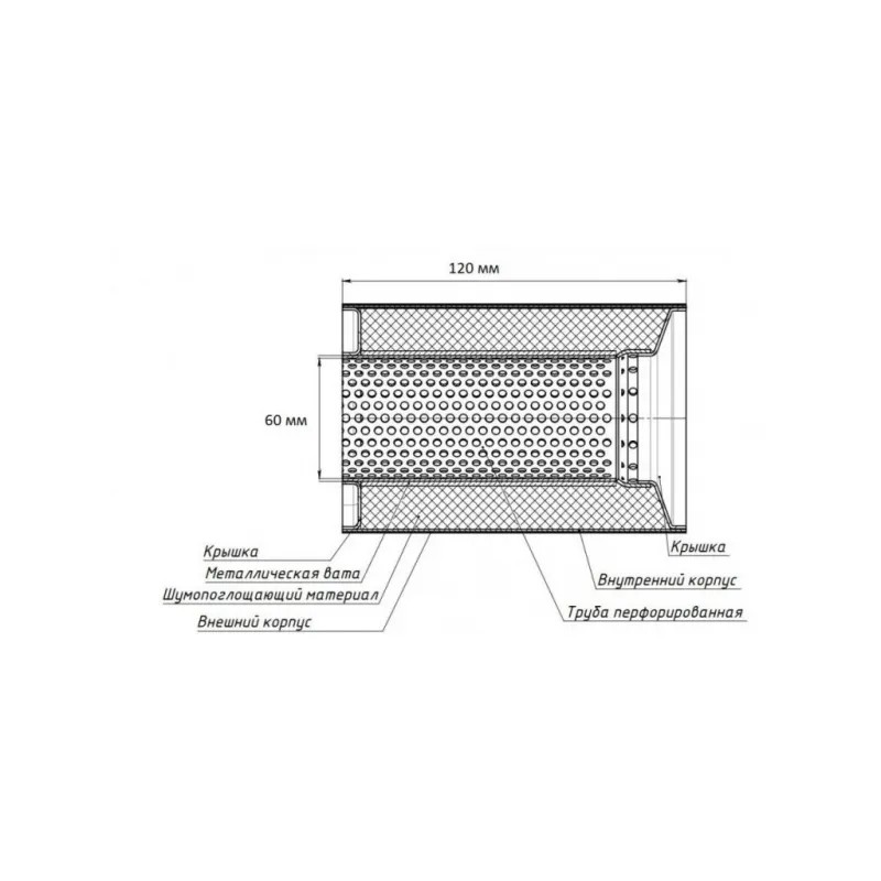 Особенности конструкции: Труба перфорированная, шерсть нержавеющая, набивка жаро-шумопоглощающая