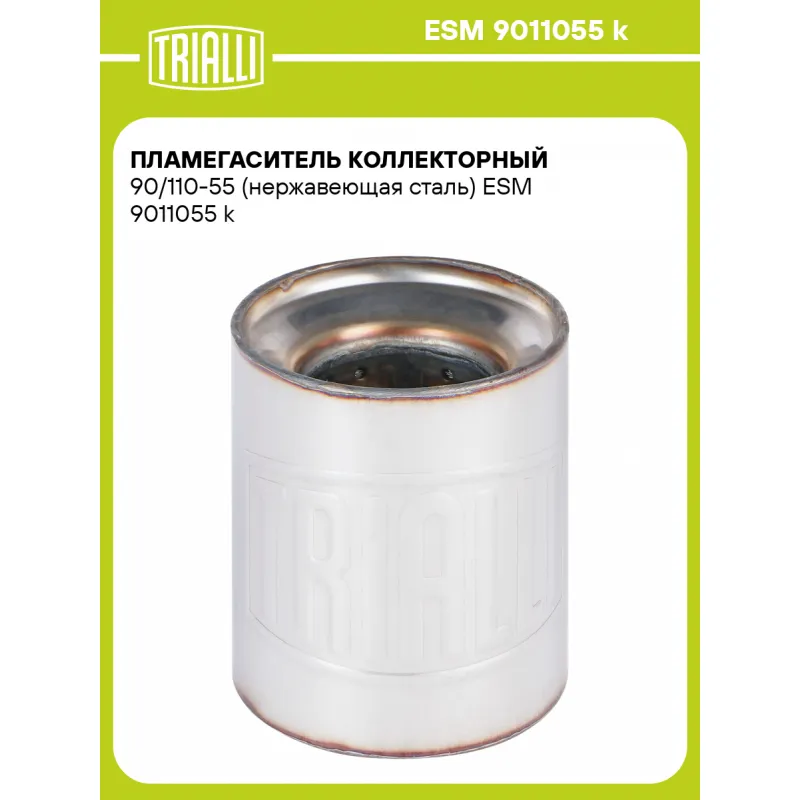 Пламегаситель коллекторный 90/110-55 (нержавеющая сталь) Характеристики: Артикул: ESM 9011055 k OEM номера: 90x110 Количество на автомобиль: 1 Особенности конструкции:: Труба перфорированная, шерсть нержавеющая, набивка жаро-шумопоглощающая Гарантийный срок: 2 года/60 тыс. Длина, мм: 110 Диаметр корпуса, мм: 90 Диаметр перфор. т... Читать полностью →