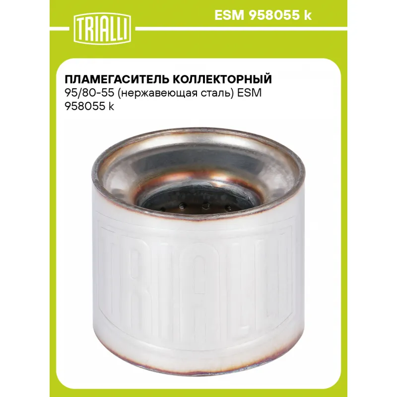 Пламегаситель коллекторный 95/80-55 (нержавеющая сталь) Характеристики: Артикул: ESM 958055 k OEM номера: 95x80 Материал: Нержавеющая сталь AISI 430 Особенности конструкции:: Труба перфорированная, шерсть нержавеющая, набивка жаро-шумопоглощающая Длина, мм: 80 Диаметр корпуса, мм: 95 Гарантийный срок: 2 года/60 тыс. Диаметр перф... Читать полностью →