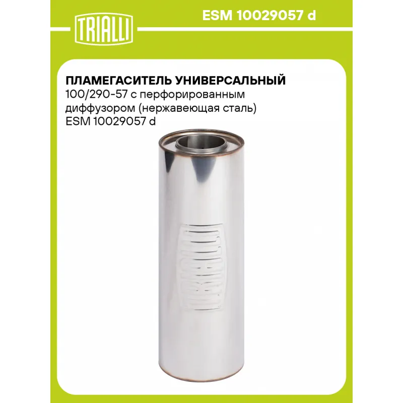 Пламегаситель универсальный 100/290-57 с перфорированным диффузором (нержавеющая сталь) ESM 10029057 d TRIALLI