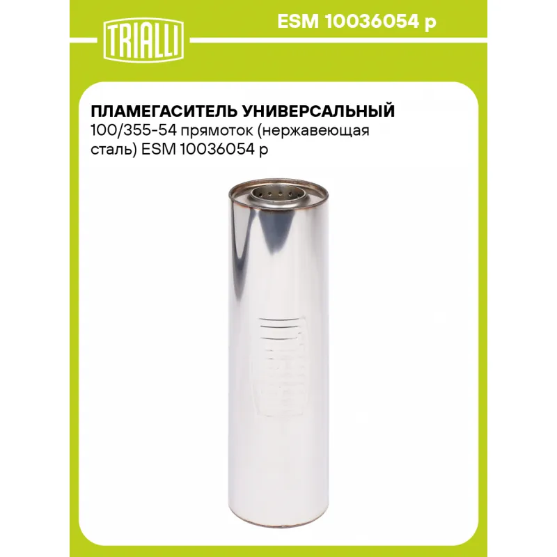 Пламегаситель универсальный 100/355-54 прямоток (нержавеющая сталь) Характеристики: Артикул: ESM 10036054 p OEM номера: 10036054 p Материал: Нержавеющая сталь AISI 430 Особенности конструкции:: Труба перфорированная, шерсть нержавеющая, набивка жаро-шумопоглощающая Длина, мм: 355 Диаметр корпуса, мм: 100 Гарантийный срок: 2 года... Читать полностью →