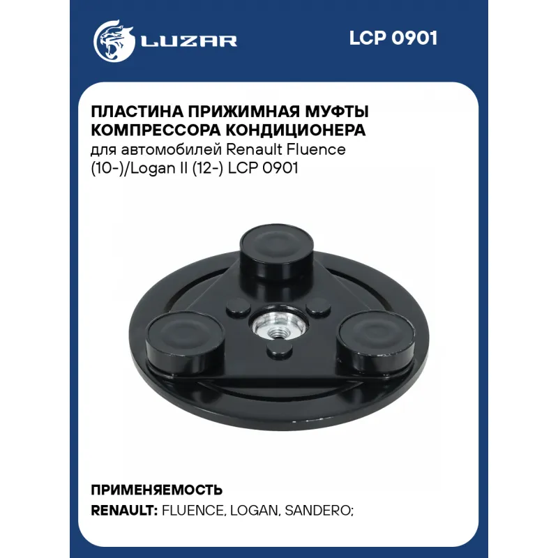 Пластина прижимная муфты компрессора кондиционера для автомобилей Renault Fluence (10-)/Logan II (12-) Характеристики: Артикул: LCP 0901 OEM номера: 8201025121, 926004634R Количество на автомобиль: 1 Ограничение производителя: CALSONIC Ид.№ компрессора: CR12SC, DKV-11R Совместим с компрессорами кондиционера: 8201025121, 92600463... Читать полностью →