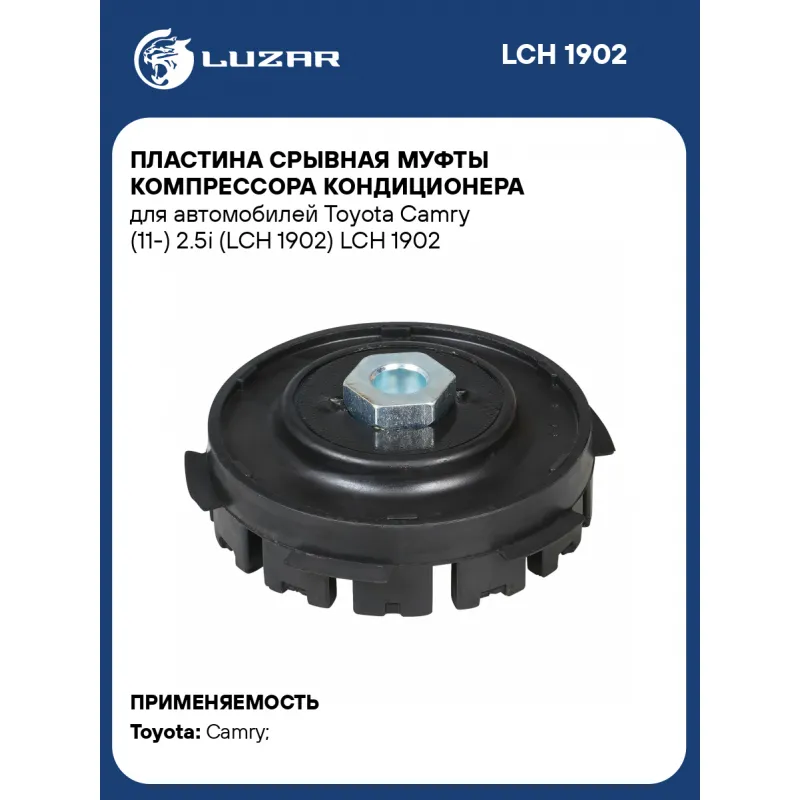Пластина срывная муфты компрессора кондиционера для автомобилей Toyota Camry (11-) 2.5i (LCH 1902) Характеристики: Артикул: LCH 1902 OEM номера: 88310-42333, 88310-42334, 883100R014, 883100R013 Количество на автомобиль: 1 Ограничение производителя: Denso Ид.№ компрессора: TSE17C Совместимость с компрессорами LUZAR: Несовместим Совместим с компрессорами кондиционера: 883100R013, 883100R014, 88310-42333, 88310-42334 Подходит для авто: Toyota Camry (11-) Для проверки применяемости отправьте VIN автомобиля через вкладку "Есть вопросы о товаре?" Комплектация: Пластина срывная - 1 шт Гарантия: от 1 года.