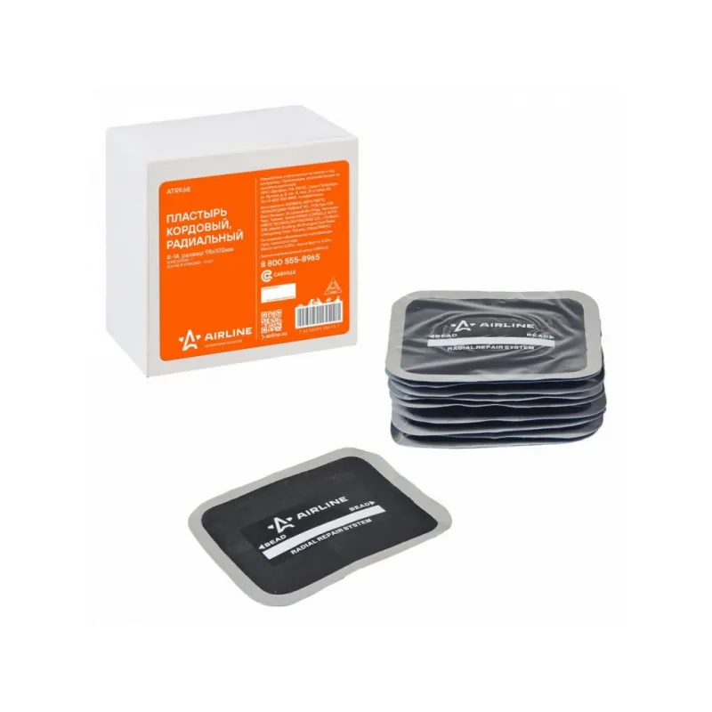 Пластырь кордовый, радиальный R-14 (95*102 мм) Описание: Радиальные пластыри предназначены для ремонта всех типов радиальных бескамерных и камерных шин легковых автомобилей, грузового и пассажирского транспорта, велосипедов, мотоциклов, сельскохозяйственной, карьерной и землеройной техники. Они обеспечивают надежный и долговечный ремонт в любой ремонтопригодной зоне шины. Размер пластыря должен быть примерно в три раза больше повреждения. Набор из пластырей входит в базовым комплект необходимых автомобильных инструментов. Оригинальный товар от производителя Airline. В случае возникновения вопросов, наши специалисты с радостью ответят на них в разделе "Вопросы". Характеристики: Артикул: ATRK68 Длина, мм: 102 Ширина, мм: 95 Форма: Прямоугольная Слои корда: 1 Тип вулканизации: Холодная Комплектация: Пластырь кордовый радиальный для б/к шин, ремонтный, для холодной вулканизации - 1 шт Гарантия: от 1 года.
