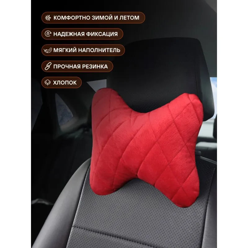 Подушка-косточка на подгол. "Алькантара", ткань, 1 шт., красная Описание: Подушка на подголовник для путешествий в машину надувная 25х21 см от бренда AIRLINE ASP-B-04 – необходимый аксессуар в поездке. Анатомическая поддержка для шеи подходит к использованию в автомобиле, дома, на работе, в самолете, в путешествиях, в походе, в дороге. Дорожная подушка удобно поддерживает шейный отдел позвоночника и помогает с комфортом преодолеть длительную сидячую поездку в автомобиле, самолете, поезде или автобусе. Подушка способствует правильной осанке за рулем и снижает нагрузку с шейного отдела позвоночника. Изготовлена из качественных износостойких материалов, имеет правильную анатомическую форму и крепится на направляющих подголовника с помощью резинки. Подушка поможет значительно увеличить комфорт, а также улучшает физическое состояние водителя или пассажира. - Против боли и для снижения нагрузки в шейном отделе; - Поддерживает правильное положение; - Универсальный размер; - Состав - полиэстер, хлопок, холлофайбер, поролон; Товар официального производителя AIRLINE. Подушка в авто станет отличным подарком автомобилисту, мужчине и женщине, автолюбителю, папе, отцу, мужу, парню и другу на Новый год, день рождения и без повода. Характеристики: Артикул: ASP-B-04 Крепление: резинка Рисунок стёжки: сота Молния: да Место установки: подголовник Длина, мм: 250 Ширина, мм: 210 Толщина, мм: 90 Комплектация: Подушка - 1 шт Картонная обичайка - 1 шт Гарантия: от 1 года.