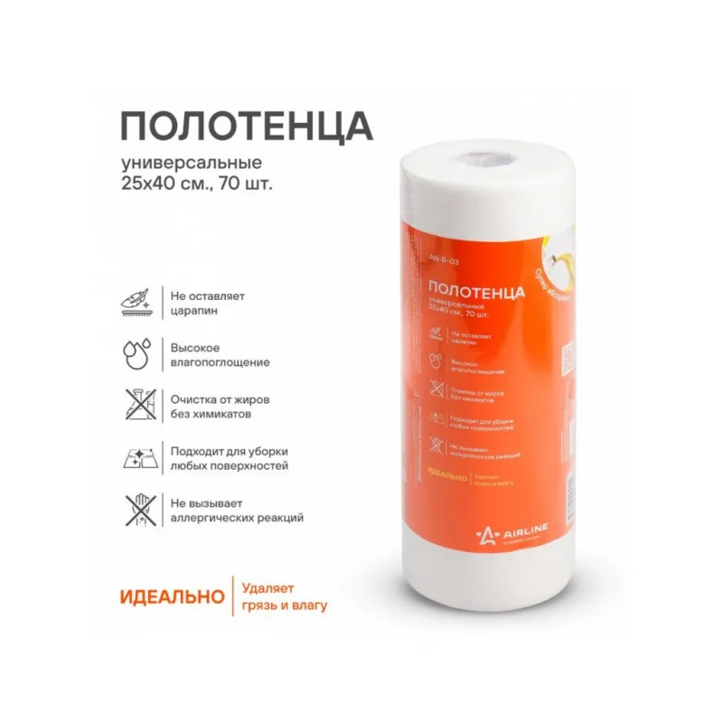 Полотенце универсальное (70 шт., 25х40 см) Описание: Полотенце 70 шт для уборки универсальное AIRLINE AN-R-03. Полотенце размером 25*40 см поможет основательно упростить процесс уборки и значительно сократит время, затраченное на дезинфекцию поверхностей и панелей в доме или автомобиле. Универсальные полотенца для уборки помогут поддержанию чистоты в салоне автомобиля, дома и в любом другом месте. В составе изделия содержится вискоза и полиэстер. Изделия собирают даже мельчайшие загрязнения и тщательно впитывают влагу. Безопасна для любых поверхностей: лакокрасочные покрытия, стекла, пластик, кожа и пр. Эффективно очищает от пятен и других загрязнений. - Состав: 70% вискоза, 30% полиэстер; - Не повреждает лакокрасочное покрытие, подходит для полировки кузова, для стекол и зеркал; - Профессиональное удаление грязи, пятен и пыли; - Не теряет свойств после стирки; - Быстро сохнет после стирки; - Высокое влагопоглощение; Набор полотенец - отличный подарочный вариант в набор автомобилиста: мужчине и женщине, автолюбителю, папе, отцу, мужу, парню и другу, на любой праздник, Новый год и просто так, незаменимая вещь для дома, для ухода за автомобилем автосервиса, для профессионального использования. В нашем магазине, вы найдете широкий ассортимент высококачественных автотоваров для автомобиля, автозапчастей, аксессуары для машины, аксессуары для тюнинга авто, отвертки для авто, инструменты для ремонта и строительства, незаменимый слесарный инструмент для авто и машины, набор инструментов, набор прямых и крестовых отверток. Характеристики: Артикул: AN-R-03 Материал: гладкий спанлейс Длина, см: 40 Ширина, см: 25 Комплектация: Полотенце универсальное с бумажным вкладышем в термоусадке - 1 шт Гарантия: от 1 года.
