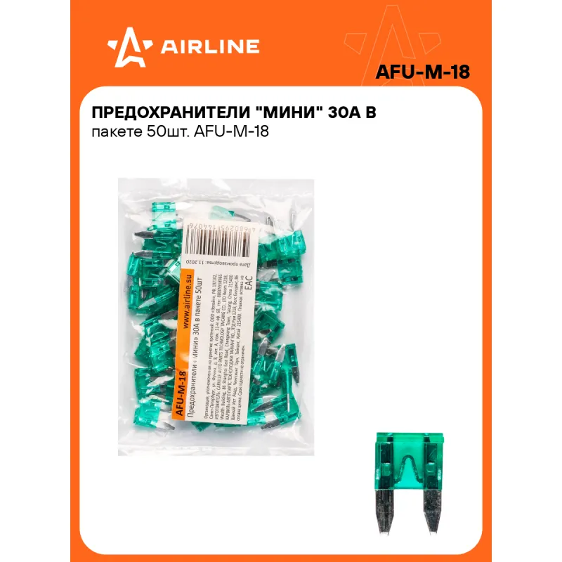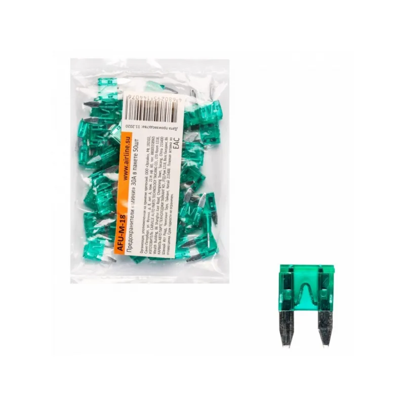 Предохранители "мини" 30A в пакете 50шт. Описание: Набор автомобильных предохранителей флажкового типа AFU-M-18, бренда Airline, предназначен для защиты автомобильной сети от скачков электричества. Автомобильные предохранители предназначены для любого вида транспорта. Состоят предохранители из плавкой вставки из надежного сплава цинка для защиты электрических цепей и оборудования автомобиля. В набор входят 50шт предохранителей одного номинала 30 А в пластиковом пакете. Набор флажковых предохранителей - это нужная вещь для каждого автомобилиста и надежный и необходимый товар для защиты вашего автомобиля будет полезным подарком для папы, мужа, парня и любому владельцу авто. В нашем магазине представлены следующие автомобильные предохранители по габаритным размерам и конструктивным особенностям: микро (micro), микро 2 (micro2), мини (mini), стандарт (standard), макси (maxi). Подойдут для любой марки машины. Товар официального производителя AIRLINE. Характеристики: Артикул: AFU-M-18 OEM номера: 91870-38090 Номинальное напряжение, В: 32 Номинальный ток, А: 30 Комплектация: Предохранитель - 50 шт Гарантия: от 1 года.