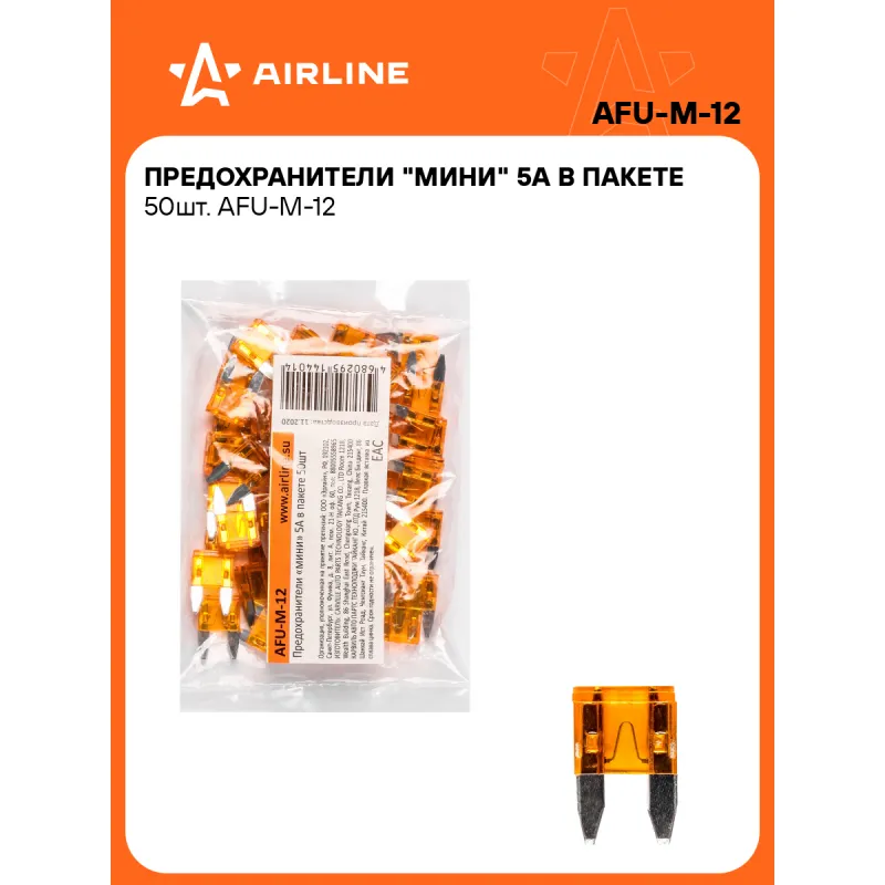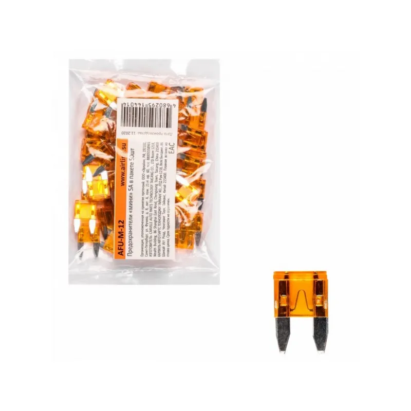 Предохранители "мини" 5A в пакете 50шт. Описание: Набор автомобильных предохранителей флажкового типа AFU-M-12, бренда Airline, предназначен для защиты автомобильной сети от скачков электричества. Автомобильные предохранители предназначены для любого вида транспорта. Состоят предохранители из плавкой вставки из надежного сплава цинка для защиты электрических цепей и оборудования автомобиля. В набор входят 50шт предохранителей одного номинала 5 А в пластиковом пакете. Набор флажковых предохранителей - это нужная вещь для каждого автомобилиста и надежный и необходимый товар для защиты вашего автомобиля будет полезным подарком для папы, мужа, парня и любому владельцу авто. В нашем магазине представлены следующие автомобильные предохранители по габаритным размерам и конструктивным особенностям: микро (micro), микро 2 (micro2), мини (mini), стандарт (standard), макси (maxi). Подойдут для любой марки машины. Товар официального производителя AIRLINE. Характеристики: Артикул: AFU-M-12 OEM номера: N 102 615 01 Номинальное напряжение, В: 32 Номинальный ток, А: 5 Комплектация: Предохранитель - 50 шт Гарантия: от 1 года.