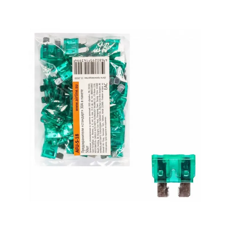 Предохранители "стандарт" 30A в пакете 50шт. Описание: Набор автомобильных предохранителей флажкового типа AFU-S-18, бренда Airline, предназначен для защиты автомобильной сети от скачков электричества. Автомобильные предохранители предназначены для любого вида транспорта. Состоят предохранители из плавкой вставки из надежного сплава цинка для защиты электрических цепей и оборудования автомобиля. В набор входят 50шт предохранителей одного номинала 30 А в пластиковом пакете. Набор флажковых предохранителей - это нужная вещь для каждого автомобилиста и надежный и необходимый товар для защиты вашего автомобиля будет полезным подарком для папы, мужа, парня и любому владельцу авто. В В нашем магазине представлены следующие автомобильные предохранители по габаритным размерам и конструктивным особенностям: микро (micro), микро 2 (micro2), мини (mini), стандарт (standard), макси (maxi). Подойдут для любой марки машины. Товар официального производителя AIRLINE. Характеристики: Артикул: AFU-S-18 OEM номера: N 017 131 15 Номинальное напряжение, В: 32 Номинальный ток, А: 30 Комплектация: Предохранитель - 50 шт Гарантия: от 1 года.
