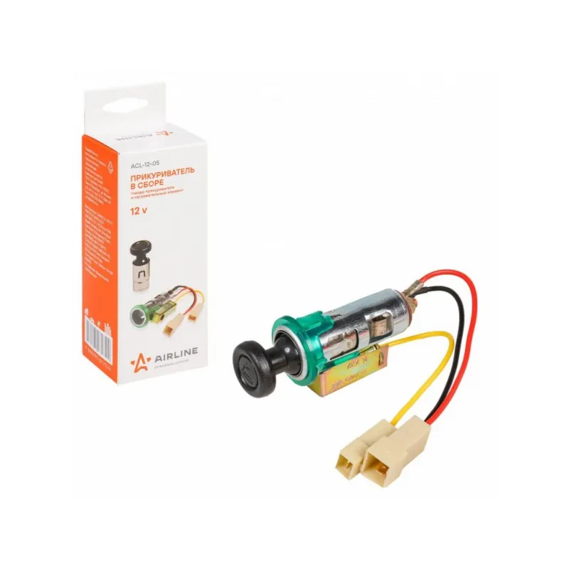 Прикуриватель для Лада 2108-099,ОКА,2141,Газель,Таврия в сборе Описание: Прикуриватель в сборе бренда AIRLINE ACL-12-05, гнездо прикуривателя и нагревательный элемент, представляет собой стандартную автомобильную розетку и нагревательный элемент прикуривателя. Применяемость: LADA 2108, 2109, 21099, LADA Ока 1113; Москвич Святогор 2141; GAZ (Волга) Газель 3302; ZAZ Таврия 1102; Особенности устройства: * Состав: металл/пластик; * Номинальное напряжение, 12 В; Прикуриватель для авто - товар официального производителя AIRLINE. Прикуриватель в автомобильный салон подойдет для замены оригинального прикуривателя в случае его неисправности. Если Вам потребуется помощь в подборе, мы всегда готовы ответить на Ваши вопросы. Характеристики: Артикул: ACL-12-05 OEM номера: 2108-3725010 Напряжение питания, В: 12 Комплектация: Розетка прикуривателя - 1 шт Нагревательный элемент - 1 шт Гарантия: от 1 года.