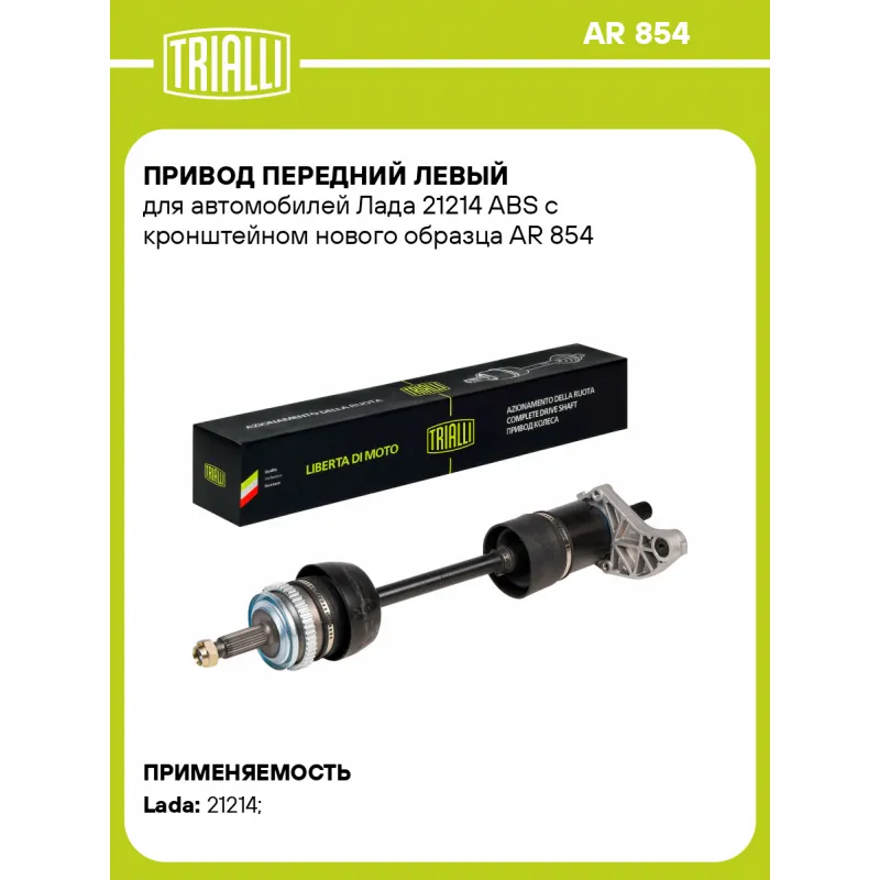 Привод передний левый для автомобилей Лада 21214 ABS с кронштейном нового образца Характеристики: Артикул: AR 854 OEM номера: 21214-2215011-30, 8450102652 Сопутствующие товары:: GO 450 Особенности конструкции:: внутренний шариковый ШРУС Гарантийный срок: 2 года/60 000 км Парный товар: AR 855 Количество на автомобиль: 1 Ось (сторона установки): передняя/ левая Внешнее зубчатое соединение со стороны колеса (внеш.): 24 Внешнее зубчатое соединение со стороны КПП (внутр.): 24 Количество зубьев ABS: 48 Длина, мм: 686 Диаметр вала,мм: 25 Тип КПП: MT Товарная линейка: BLACK Подходит для авто: ВАЗ 21214 Для проверки применяемости отправьте VIN автомобиля через вкладку "Есть вопросы о товаре?" Комплектация: Привод в сборе - 1 шт Гайка - 1 шт Гарантия: от 1 года.